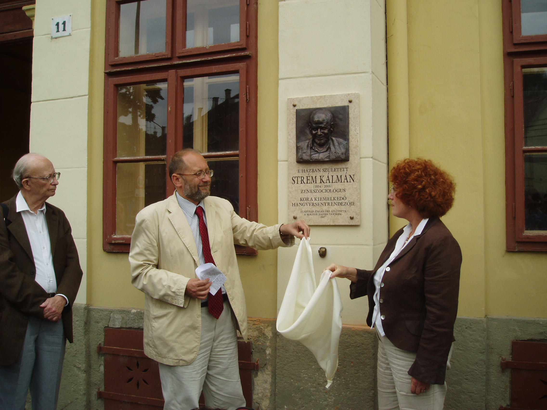 Nyilvános 2208 | 5082 | Strém Kálmán emléktáblájának felavatása 2007. május 28-án Nagykanizsán, Erzsébet tér 11. számú szülőházán. A táblát a Magyar Haydn Társaság állította, az eseményt a Kanizsai Klasszikusok Kulturális és Közhasznú Alapítvány rendezte. | A képen Földes Imre zenetörténész, Malina János zenetörténész, a Magyar Haydn Társaság elnöke és dr. Gerő Katalin, az emléktábla alkotója. Strém Kálmán (1934-2005) zeneszociológus, hangversenyrendező, a legjelentősebb hazai koncertrendező iroda vezetője 1934. május 23-án született Nagykanizsán az Erzsébet tér 11. számú épületben, az ún. Gutmann–palotában. Évtizedekig tevékenykedett az Országos Filharmóniánál, ahol a vidéki osztály vezetőjeként felbecsülhetetlen értékű munkát végzett. 1978-ban a Zeneművész Szövetség ügyvezető titkára lett, ezen a posztján húsz évig tevékenykedett. Közben olyan, a magyar zenei élet húsbavágó kérdéseiről publikált nagyhatású könyveket, mint a Hol vannak a magyar vonósok?, a Lemorzsolódás a zeneiskolákban és a Vitairat a magyar zenei művelődésről. A magyar zenei élet jobbítására közreadott javaslatai közül a — mára sajnos megszüntetett — zenei menedzserképzést ő indíthatta el a Zeneakadémián. A menedzselést nemcsak tanította, hanem a rendszerváltást követően maga is vállalkozni kezdett, s létrehozta a Strém Koncert Kft.-t, amely hamarosan a legnagyobb nem állami hangversenyrendező irodává vált. Strém Kálmán e minőségében is példamutató, áldozatos munkát végzett. Tevékenységének egyik fő iránya a magyarországi Haydn–kultusz erősítése volt: megszervezte és működtette a Fertőd–Eszterházai Nyári Fesztiválokat. Hangversenyrendezői munkájának másik pólusán a kortárs zene állott: ő hívta életre Balatonföldváron a Földvári Zenei Napokat, ahol igaz összművészeti kulturális műhelyt hozott létre (sajnos, mára ez a rendezvénysorozat is megszűnt). Hangversenyeit mindig a legnagyobb gondossággal, európai ízléssel rendezte meg. S bár ő maga nem volt muzsikus, de — mint egy tisztelője megfogalmazta — a hangversenyrendezést művészi fokon művelte. 2005. november 27-én bekövetkezett hirtelen halálával egy korszak zárult le a magyar zenei életben. Batta András, a Zeneakadémia rektora a következő szavakkal méltatta őt: "Olyan fajta ember volt, akiről azt hittük soha nem öregedik meg és nem fárad el. Élete volt a zene és a zene közvetítése. Évente százával szervezett, rendezett hangversenyeket, állt ki jó ügyek mellett, fedezett fel fiatal tehetségeket, adta meg a tiszteletet idős művészeknek." Halála óta már két emléktáblát avattak tiszteletére: Székesfehérváron a Szent István Művelődési Központban és a budapesti Liszt Ferenc Zeneművészeti Egyetemen. Most nagykanizsai szülőházára került fel emléktábla, emlékező beszédet Malina János zenetörténész, a Magyar Haydn Társaság elnöke tartotta. Az eseményt — természetesen — hangverseny is követte a Jézus Szíve templomban, amelyen Földes Imre tanár úr idézte fel Strém Kálmán alakját a közönség előtt. A hangversenyen közreműködtek: Horváth Anikó (csembaló), Kelemen Barnabás (hegedű), Kokas Katalin (hegedű és brácsa), Kokas Dóra (cselló). |