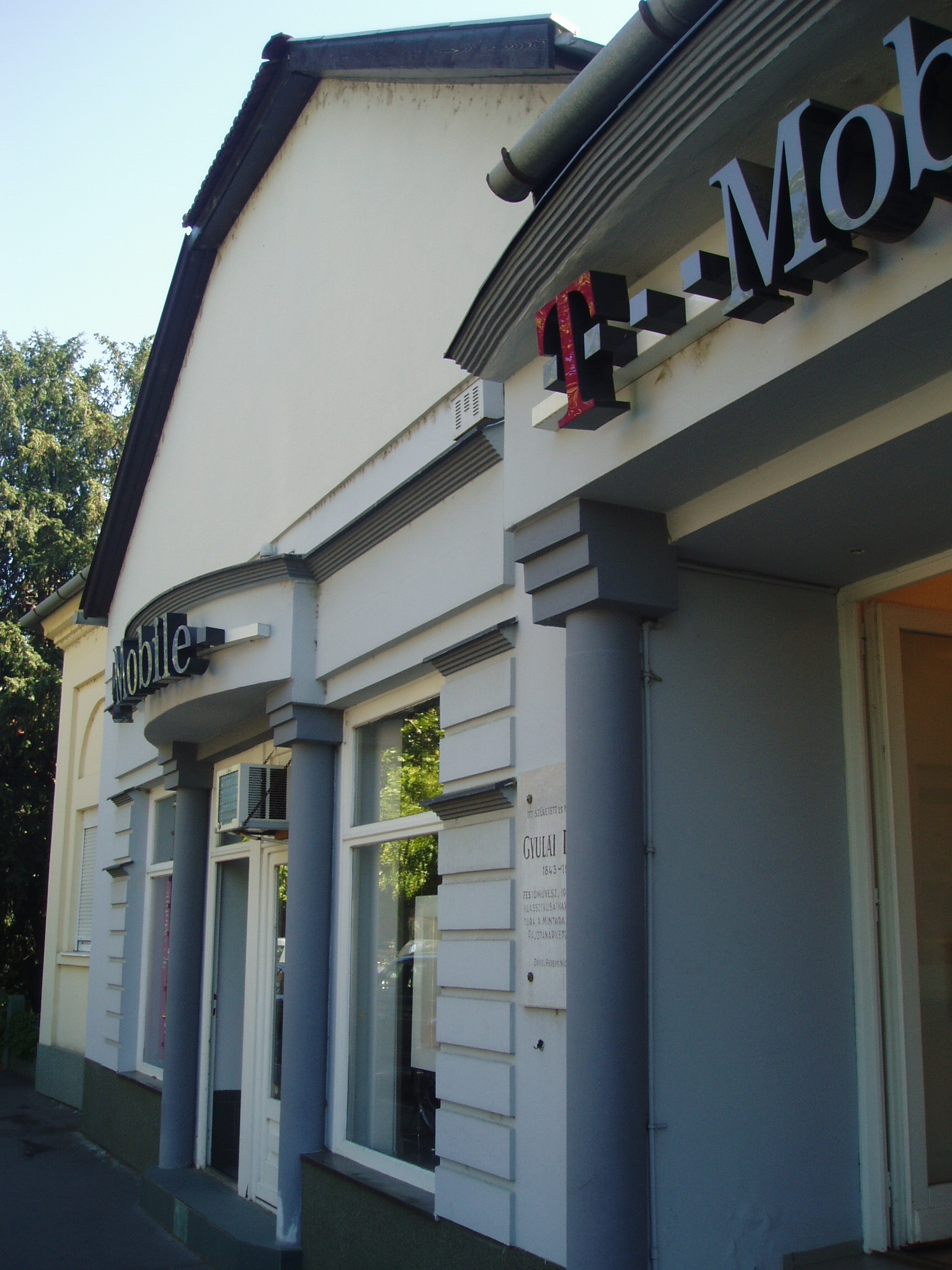 Nyilvános 1522 | 3082 | Gyula, Béke sugárút 4. | Az Élővíz csatornán átívelő hídon túl álló épületen emléktábla jelzi, hogy ebben a házban született Gyulai László (1833-1911) festőművész, Munkácsy barátja (eredeti neve Kratochvill László volt.) 1861-ben ismerkedtek meg, amikor Munkácsy - akkor még Lieb Miska - Gyulán élt (lásd: Gyula, Munkácsy u. 15.). Együtt jártak Karl Fisherhez rajzórákat venni (lásd: Gyula, Petőfi tér 5.). Barátságuk Munkácsy távozása után sem szűnt meg. Ösztöndíjjal a müncheni festészeti akadémiára kerültek, ahol együtt is laktak. Amikor pedig a már világhírűvé vált Munkácsy Gyulán járt, meglátogatta a Kratochvill családot is. Gyulai László itthon rajztanárként dolgozott és mint illusztrátor vált ismertté. A fénykép 2007 júliusában készült. Felh. irod.: Czeglédi Imre: Gyula útikalauz. 2. bőv. kiad. Gyula, 1995 |