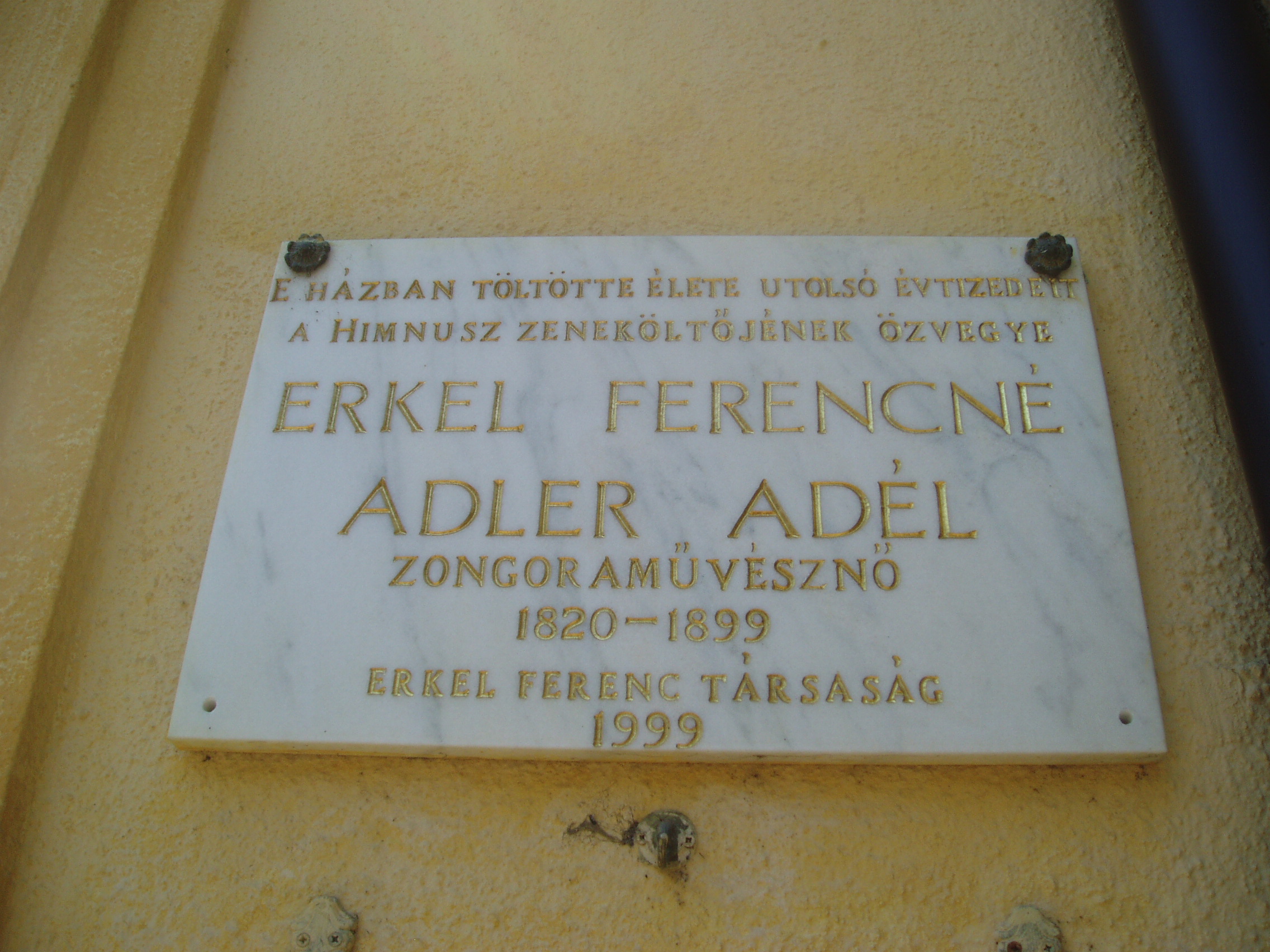 Nyilvános 1137 | 1647 | Gyula, Kossuth utca 30. | Az Almásy-kastélyhoz vezető kőhíddal egyvonalban, az utca túlsó oldalán álló földszintes lakóház egykor Erkel Rezső (Rudolf) vármegyei főorvos, Erkel Ferenc öccse lakása volt, ahol a zeneköltő is gyakran megfordult (János testvérük a szomszédban, a mai 28. szám alatt lakott). Jókai Mór két ízben is megfordult a házban. Először Laborfalvy Rózával 1848. augusztus 29-én kötött házasságuk után voltak a ház vendégei (Erkel Rezső korábban a Nemzeti Színház orvosa volt, onnét ismerték egymást). 1849 júliusában, a szabadságharc vége felé Jókai, Pestről elmenekülve az Erkel család vendégszeretetére bízta feleségét, akivel együtt volt a kor kiváló operaénekesnője, Schodelné Klein Róza is, akik a ház két udvari szobájában húzták meg magukat. Ide tért vissza Jókai feleségéért a világosi fegyverletétel után. Erről szól "Egy napom Gyulán" című szívszorító írása: "Ez volt életem legszomorúbb napja. 1849. augusztus 13-án nyitottam be a gyulai Erkel ház ajtaján ezzel a szóval: nincsen hazánk”. Jókai innét utazott álöltözetben, hamis papírokkal Tardonára. 1860-tól haláláig ebben a házban élt Erkel Ferencné Ádler Adél, miután különvált férjétől. Gyulán hunyt el, sírja a Szentháromság-temetőben van. Az épületen Erkel Rudolf, Ádler Adél és Jókai Mór emlékét márványtáblákon örökítették meg. A fénykép 2007 júliusában készült. Felh. irod.: Czeglédi Imre: Gyula útikalauz. 2. jav., bőv. kiad. Gyula, 1995 |