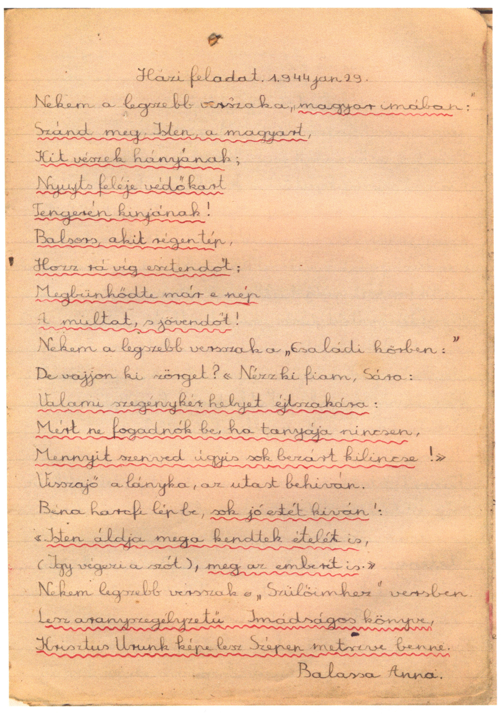 Nyilvános 2037 | 5213 | Rövid leírás | Teljes leírás (113 B) | Balassa Anus írásfüzetéből (részlet) Ma is tanulságosak az iskolai dolgozatok és a házi feladatok |