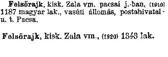 Nyilvános 2356 | 6550 | Felsőrajk | kisk. Zala vm., (1920) 1343 lak. Felsőrajk kisk. Zala vm. pacsai j. -ban, (1910) 1187 magyar lak., vasúti állomás, postahivatal; u. t. Pacsa. Cím: Révai nagy lexikona Alcím: az ismeretek enciklopédiája Kiadás: Budapest : Révai testvérek, [1911]- Kötetei: 1. köt., A - Arany 2. köt., Arány - Beke 3. köt., Béke - Brutto 4. köt., Bratus - Csát 5. köt., Csata - Duc 6. köt., Duc - Etele 7. köt., Stelka - Földöv 8. köt., Földpálya - Gres 9. köt., Gréc - Herold 10. köt., Hérold - Jób 11. köt., Jób - Nontur 12. köt., Kontúr - Lovas 13. köt., Lovas - Mons 14. köt., Mens - Ottó 15. köt., Ottó - Racine 16. köt., Racine - Sodoma 17. köt., Sodoma - Tarján 18. köt., 19. köt., Vár - Zsüri | Kiegészítés Aachen - Beöthy 20. köt., Kiegészítés: Bér - Zsolt ETO jelzet: 03=945.11 Szakjelzet: 030 Cutter: R 62 Nyelv: magyar |