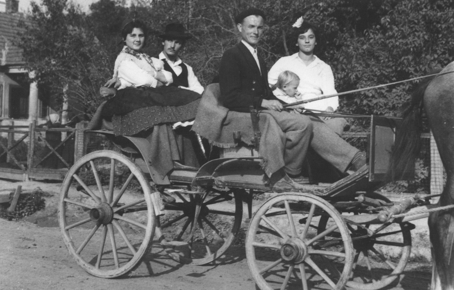1963-64 körül. Szüreti felvonulás. Balról jobbra Porogi Mária, Kozári József, Antal Árpád, Antal Erika, Horváth Ilona