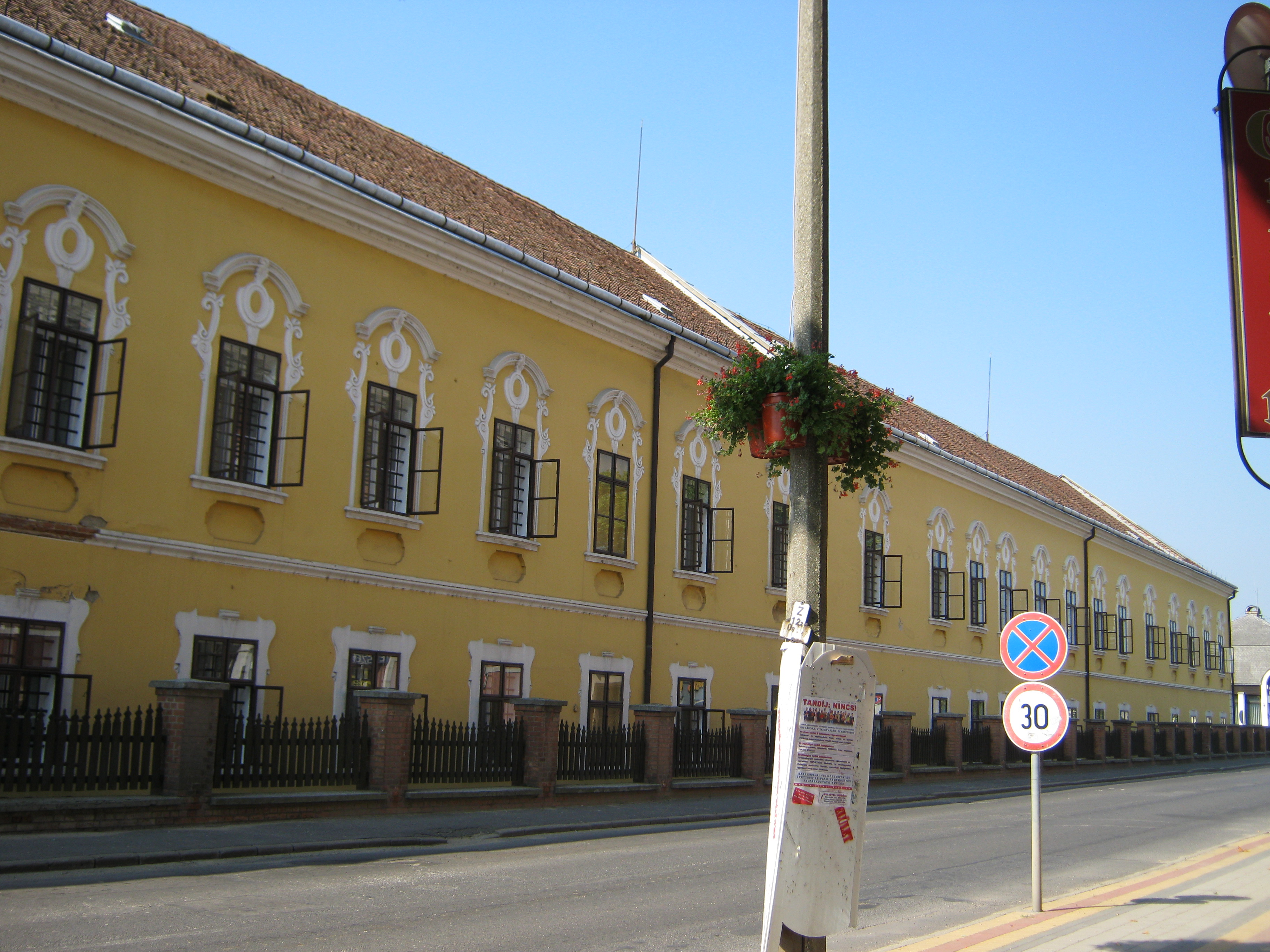 Nyilvános 1154 | 2169 | Nagykálló, Szabadság tér 13. A régi vármegyeháza | Az egyemeletes, négyszögletes belső udvart körbezáró, copfstílusú középület 1769-80 között épült, olasz építészek, az Aprilis testvérek irányítása alatt. Dísztermében 1770 körül készült, szintén copf freskók láthatók. Salvatore Aprilis (aki a sátoraljaújhelyi vármegyeháza építését is vezette) kezdte az építést, majd halála után testvére, Giuseppe Aprilis folytatta azt. Az eredetileg U alakú épületet a XIX. század végén bővítették mai formájára, körülépítve az udvart. A megyeszékhely Nyíregyházára költözése után előbb kórház, majd ideg- és elmegyógyintézet, jelenleg a Szabolcs-Szatmár-Bereg Megyei Önkormányzat Pszichiátriai Szakkórháza működik benne. Felh. irod.: Harsányi Gézáné: Kálló kincsei. Nagykálló, 2007 www.nagykallo.net A fénykép 2010 augusztus elején készült. |