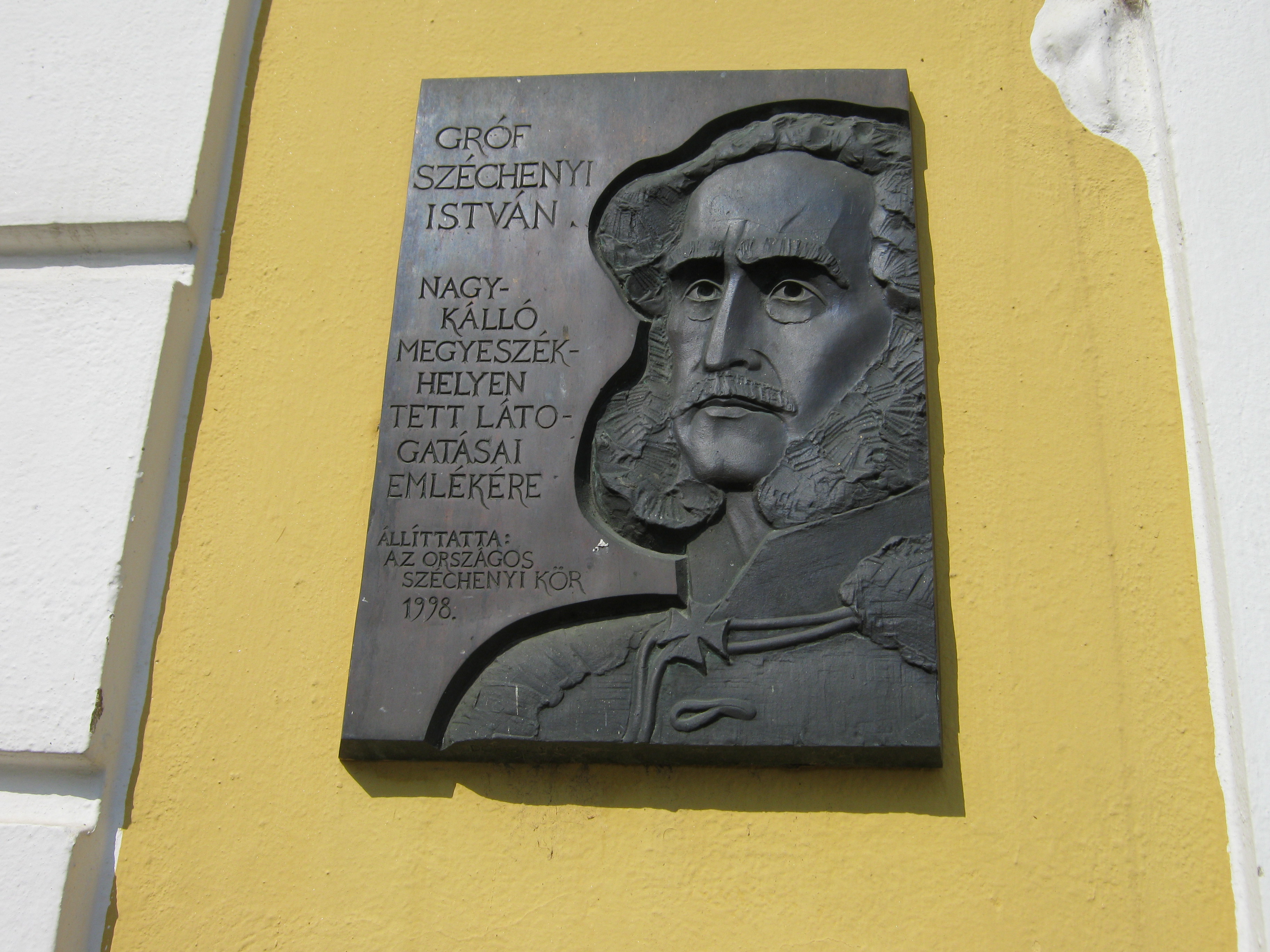 Nyilvános 1085 | 1450 | Nagykálló, Szabadság tér 13. A régi vármegyeháza | Az egyemeletes, négyszögletes belső udvart körbezáró, copfstílusú középület 1769-80 között épült, olasz építészek, az Aprilis testvérek irányítása alatt. Dísztermében 1770 körül készült, szintén copf freskók láthatók. Homlokzatán 1998-ban avatták fel Széchenyi István emléktábláját. Felh. irod.: Harsányi Gézáné: Kálló kincsei. Nagykálló, 2007 A fénykép 2010 augusztus elején készült. |