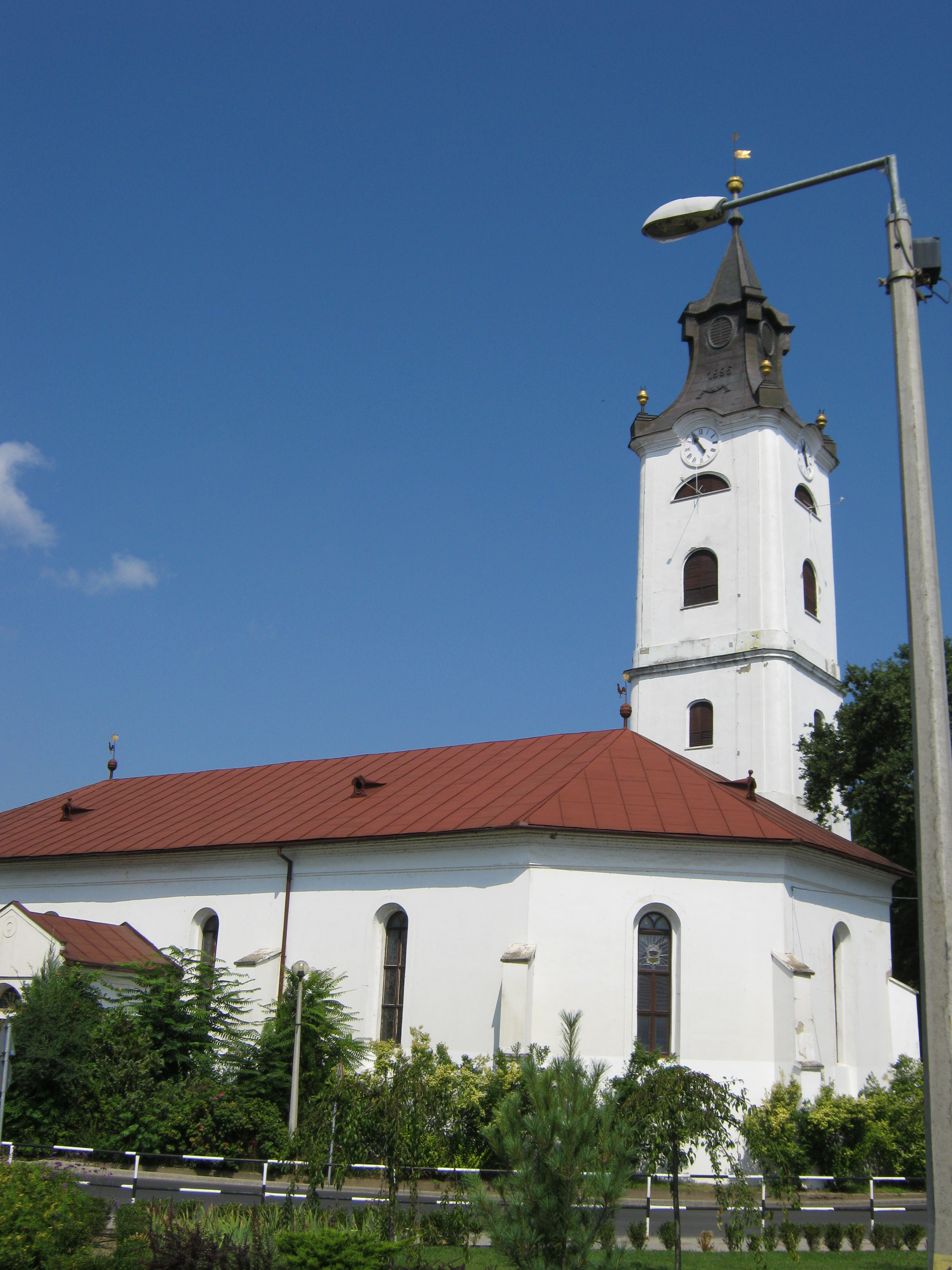 Nyilvános 1189 | 1977 | Nagykálló, Szabadság tér: Református templom | A templom 1710 körül emelt barokk épület, amit a XIX. század második felében átalakítottak, berendezése is 1877-ben készült eklektikus stílusban. A harangtorony a gótikus hagyományok XVIII. századi megjelenését reprezentálja. A harangtornyot 1732-ben és 1801-1802-ben is átalakították. Különálló, háromemeletes építmény, falvastagsága szokatlanul nagy, ami arra utal, hogy már eredetileg is igen magasra tervezték, s tűzőrző célokat is szolgált. Sajnos, bemenni nem tudtam, pedig az építészeti látvány mellett nagyon szerettem volna megnézni a Kustár Zsuzsa nagykanizsai képzőművész által készített üvegablakokat. Az érdeklődő ezek képét itt találhatja: http://www.kustarzsuzsa.hu/reszletek.html?nagykallo_01 Felh. irod.: Harsányi Gézáné: Kálló kincsei. Nagykálló, 2007 Látnivalók Szabolcs-Szatmár-Bereg megyében. Miskolc, Well-PRess, 1999 A fénykép 2010 augusztus elején készült. |
