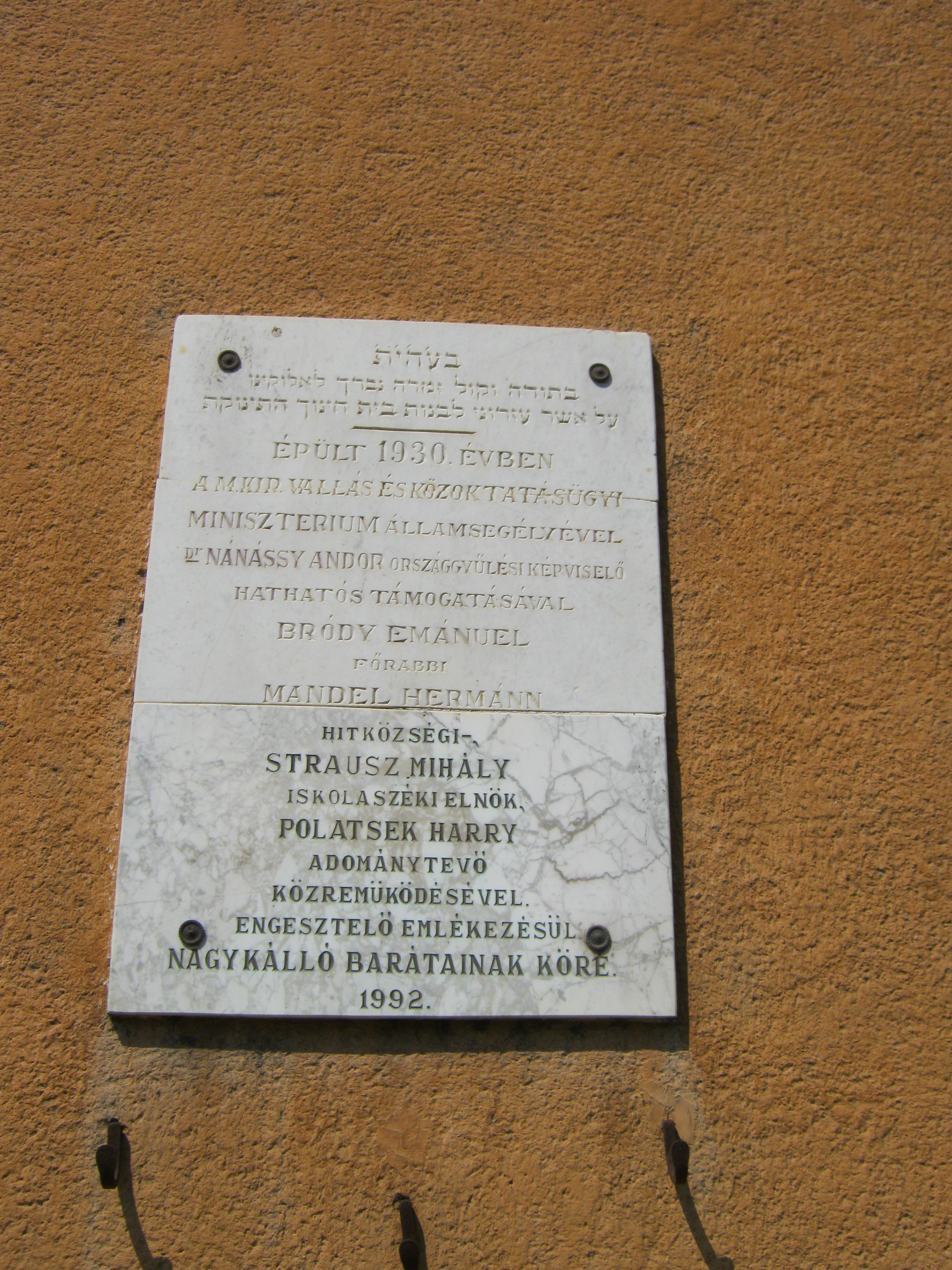 Nyilvános 1112 | 1488 | Nagykálló, Nagybalkányi út 7. | Az egykori Izraelita iskola 1930-ban közadakozásból épült. Létesítéséhez anyagilag jelentősen hozzájárult Pollatsek Harry Amerikába vándorolt kállói ügyvéd. 1944-ben itt alakították ki a gettót, innen hurcolták el a kállói zsidóság nagy részét. Felh. irod.: Harsányi Gézáné: Kálló kincsei. Nagykálló, 2007 A fénykép 2010 augusztus elején készült. |