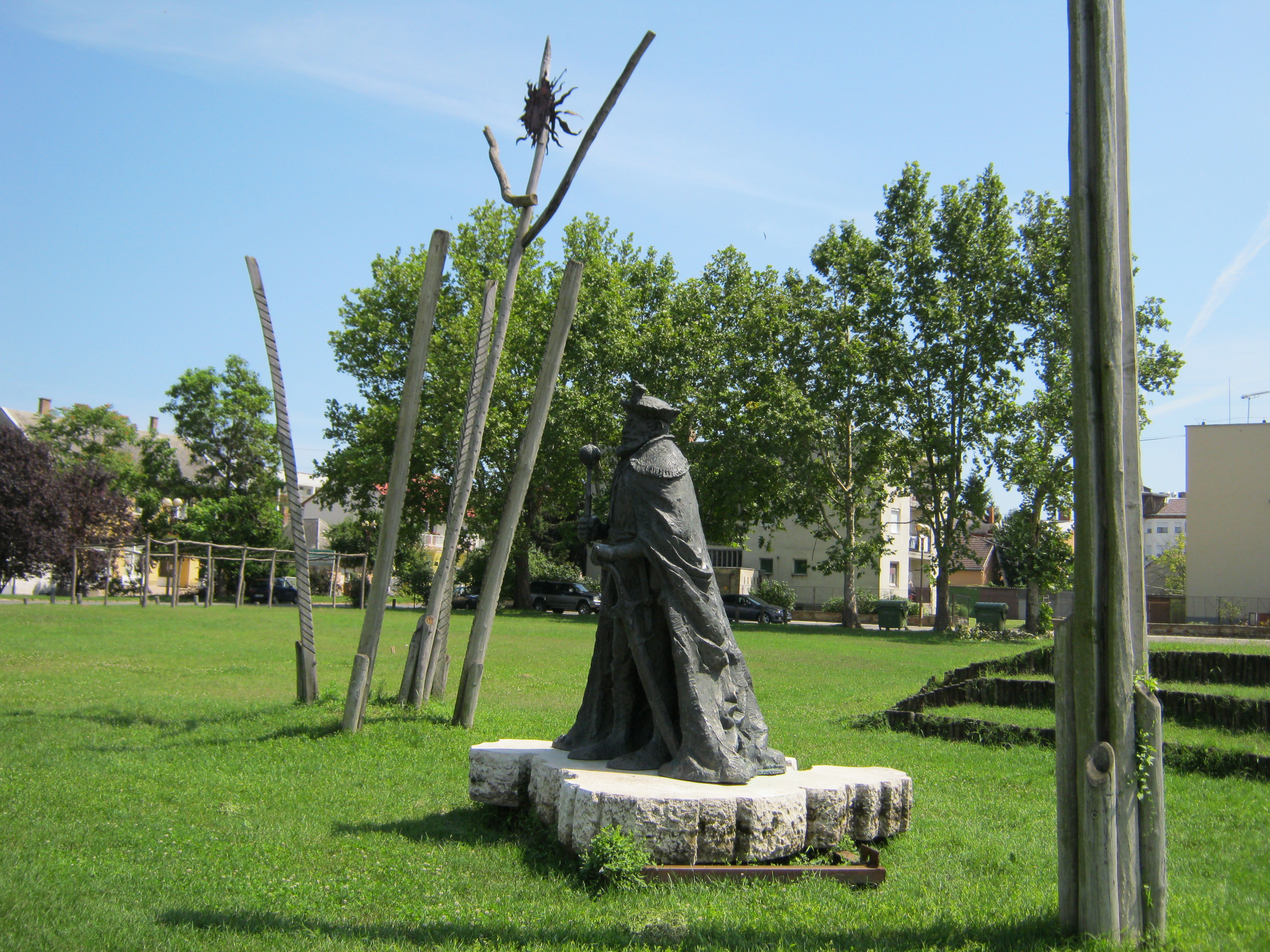 Nyilvános 1108 | 1617 | Nyírbátor: Bethlen Gábor emlékműve | A minorita templom közelében található tó partján áll Bethlen Gábor (1580-1629) erdélyi fejedelem, választott magyar király emlékműve. Bárhogyan is keresgéltem, semminemű információt nem találtam se alkotójáról, se magáról a szoborról. A fénykép 2010 augusztus elején készült. |