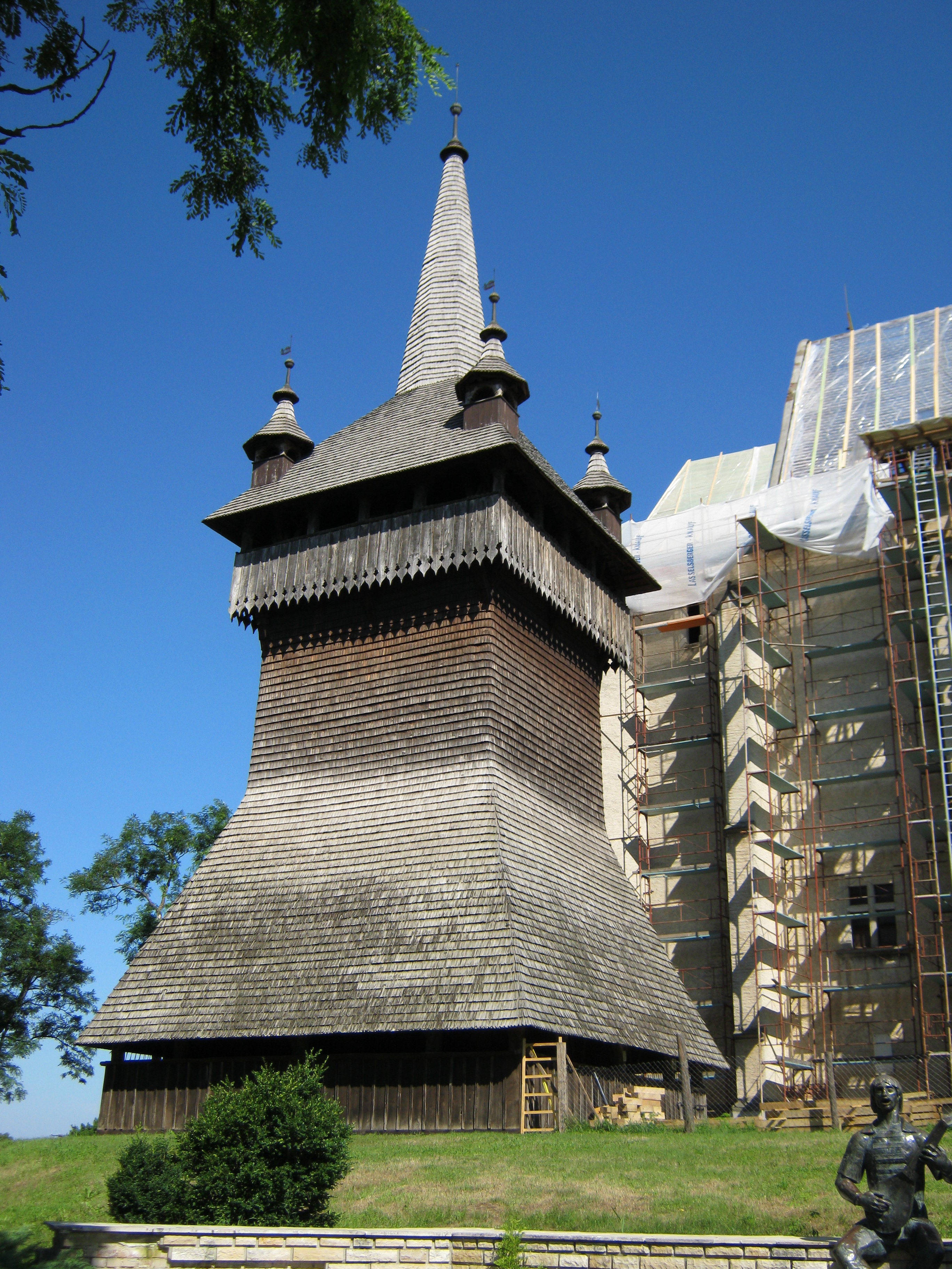 Nyilvános 1110 | 1523 | Nyírbátor, Báthori utca 24. | A középkori református templom mellett áll az 1640 körül épült késő reneszánsz fa harangtorony, mely a Felső-Tisza vidékének hasonló építményei közül méretével és korával is kitűnik. Közel 30 méter magas, tiszta szerkezetű, szabatos ácsmunkájú alkotás. Galériája, valamint zsidnelyezett szoknyája miatt kissé bástyaszerű benyomást kelt. Felh. irod.: Látnivalók Szabolcs-Szatmár-Bereg megyében. Miskolc, Well-PRess, 1999 A fénykép 2010 augusztus elején készült. |