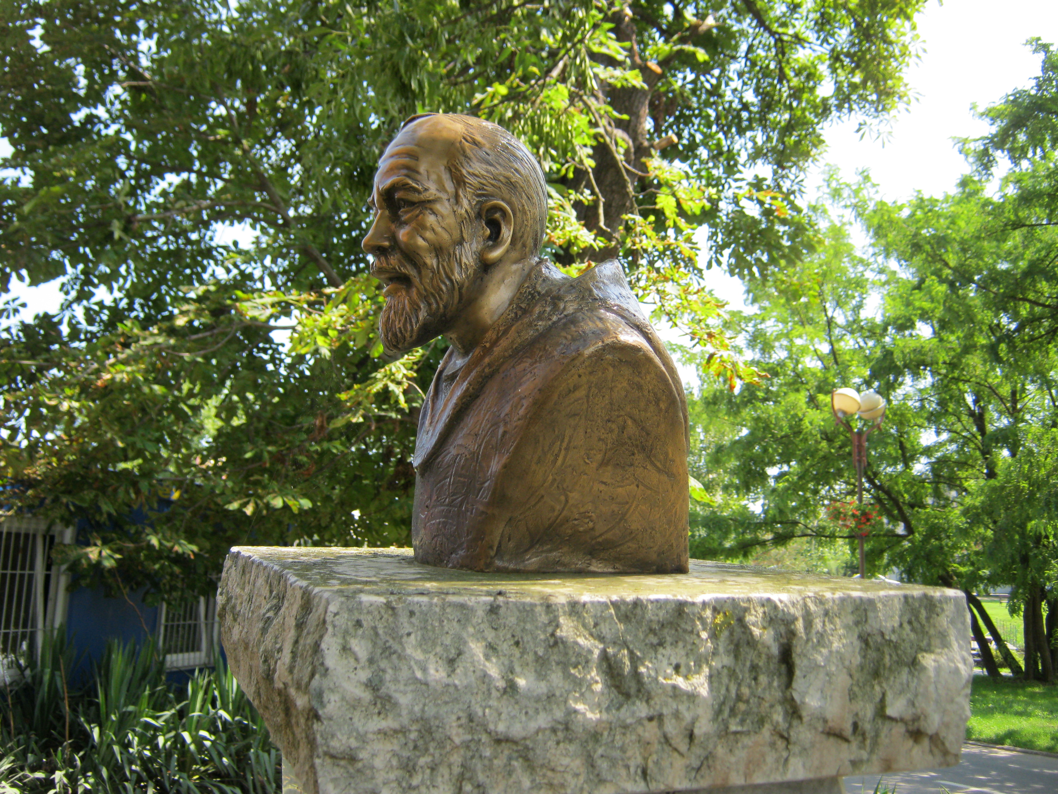 Nyilvános 1147 | 2185 | Nyírbátor, Károlyi utca 19. előtt: Kelemen Didák mellszobra | Nyírbátor jelentős műemléke, a római katolikus (korábban minorita) templom előtt állították fel Kelemen Didák (1683-1744) mellszobrát. A minorita szerzetes 1720-ban az általa újra-alapított nyírbátori kolostor főnöke lett. Ebben a minőségében ő építtette a ma a város múzeumának helyet adó kolostort és állíttatta helyre a XVI. század végén súlyosan megsérült templomot. Számos iskolát és templomot épített, s a szegények nagy pártfogója volt. Irodalmi munkássága is jelentős, 13 kötetnyi könyv szerzője. Közül a legkiemelkedőbbnek Búzafejek című prédikációskötetét tartják, amely egyházi, irodalmi és nyelvészeti szempontból egyaránt értékes eleme a magyar kultúrának. Felh. irod.: Látnivalók Szabolcs-Szatmár-Bereg vármegyében. Miskolc, Well-PRess, 1999 Bogdan Adamczyk: Isten Szolgálja Kelemen Didák (1683-1744) hite és tevékeny szeretete korában, a történelmi Magyarországon. = http://mkdsz.hu/content/view/18338/210/ A fénykép 2010 augusztus elején készült. |
