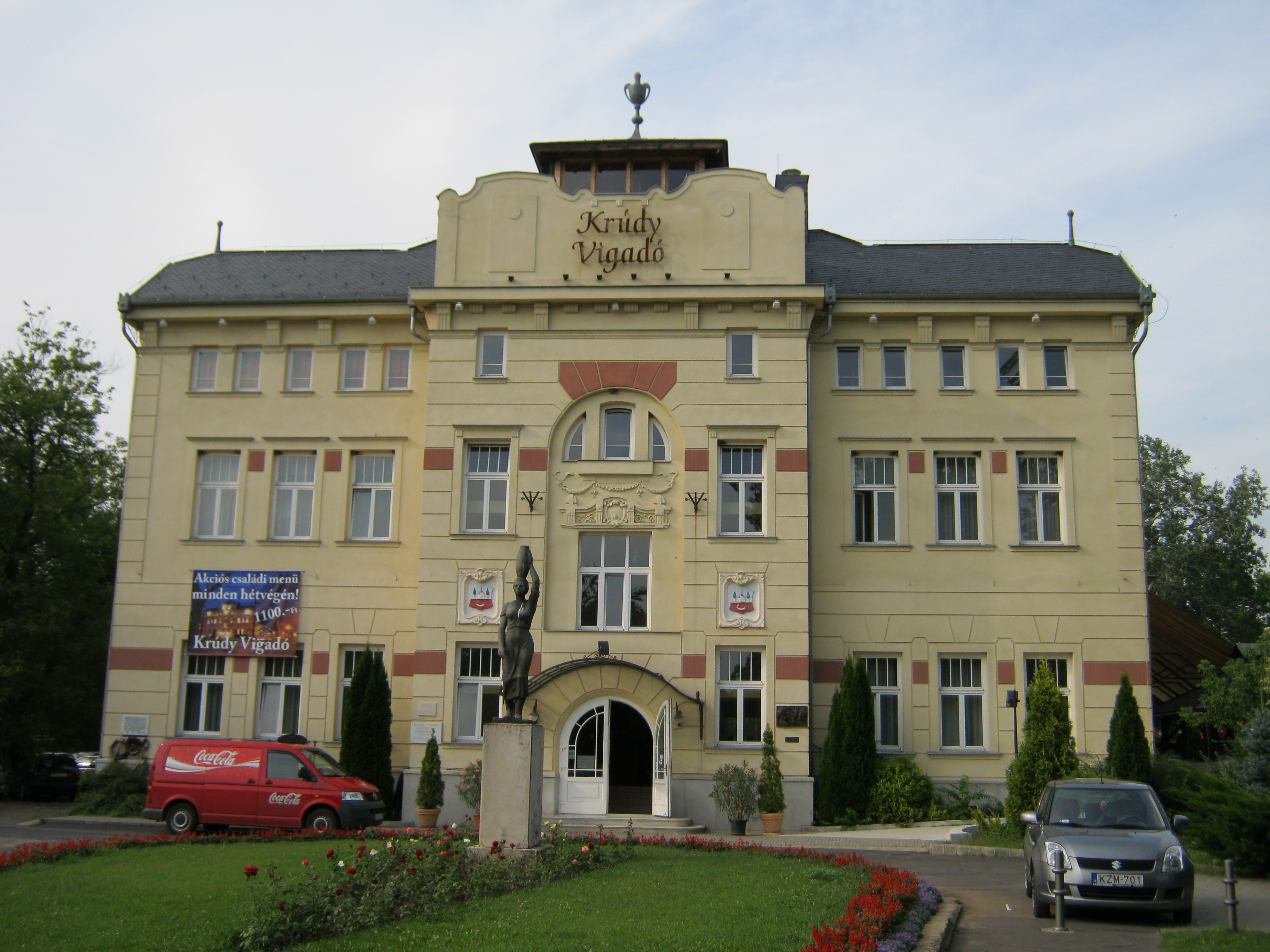 Nyilvános 1150 | 1738 | Nyíregyháza-Sóstó, Krúdy-Vigadó | A műemlékké nyilvánított Krúdy Vigadó Sóstófürdő központjában emelkedik. A Fürdőházat is tervező Pazár István tervei szerint 1911-ben épült szecessziós stílusban. A Vigadó egykoron a nyíri dzsentrik hatalmas és fényűző báljainak, mulatozásainak színhelyéül szolgált. Krúdy, aki személyes tapasztalatokkal rendelkezett e téren, így festette le az akkori világot: "Különösen volt itt egy nevezetes társaság, amely nyíregyházi és Szabolcs megyei urakból verődött össze, amely a Sóstó kultiválását tűzte ki életcéljául és a fürdő megnyitásának napjától annak bezártáig ébren és muzsikaszó mellett töltötte az éjszakákat. A régi balatonfüredi mulatságok kismiskák voltak ezekhez a dáridókhoz mérten. ... Ha pedig kártyázni kezdtek ezek az urak, akkor nemegyszer vasárnaptól vasárnapig járta a 'csöndes', és szép darab földek cseréltek gazdát. Olyan világ volt itt, mintha itt élte volna ki magát utoljára a régi, letűnt Magyarország. A kis sóstói fürdőn robbant ki minden virtus a magyarból, ami még megmaradott benne apáiból. Ha nem volt kártya, volt leányszöktetés vagy velencei éj a tavon. A kártya izgalmaiért kárpótoltak a nevezetes párbajok..." A leromlott, elhanyagolt épületet a közelmúltban gyönyörűen felújították az eredeti tervek alapján. Újra megnyitása óta irodalmi estekkel, koncertekkel és Krúdy-ételspecialitásokkal is emlékeznek a város írójára. Felh. irod.: Krúdy Gyula: Magyar tájak www.krudyvigado.hu A fénykép 2010 augusztus elején készült |