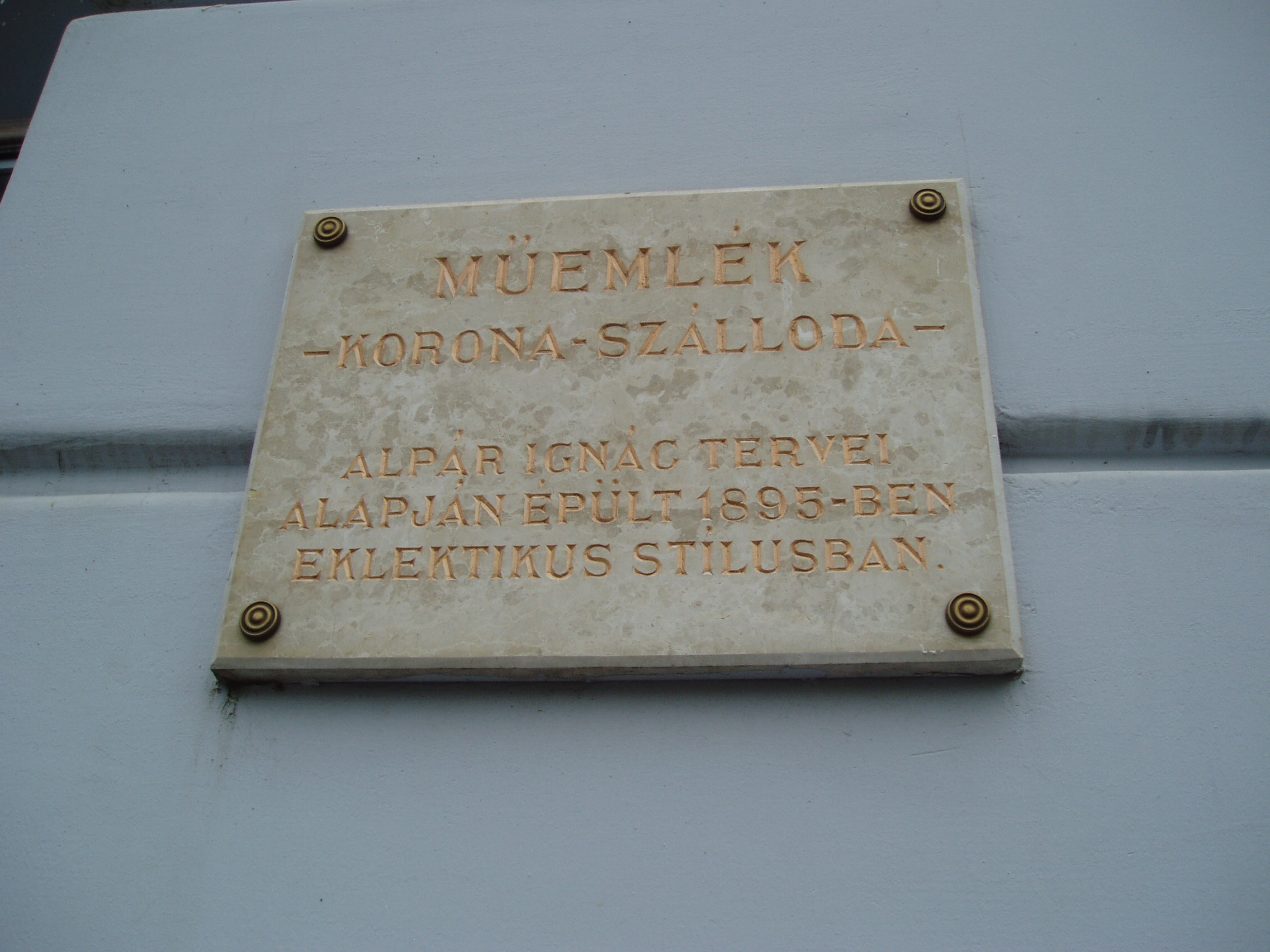 Nyilvános 1099 | 1478 | Nyíregyháza, Dózsa György utca 1. Korona szálló | Az eklektikus stílusú szálloda Nyíregyháza központi terének fő ékessége. 1895-ben épült Alpár Ignác tervei szerint. A neves budapesti építész több épületet is tervezett a városnak: az evangélikus elemi iskolát, a megyeházát és a szállodával majdnem egyidőben épült színházat (lásd: Nyíregyháza, Bessenyei tér 13.). A Korona nagyterme Nyíregyháza életében fontos szerepet játszott. Itt zajlottak a városi protokoll–események és bálok. Híres prímása volt a városnak Benczi Gyula, aki gyakran szórakoztatta muzsikájával a báli vendégeket. A terem helyet adott a közművelődésnek is. Nem sokkal a Korona megnyitása után alakult meg a Szabolcs vármegyei Bessenyei Kör, mely főleg a XX. század első évtizedeiben töltött be jelentős kulturális missziót. Felh. irod.: Látnivalók Szabolcs-Szatmár-Bereg megyében. Miskolc, Well-PRess, 1999 Margócsy József: Utcák, terek, emléktáblák [1.] Nyíregyháza, Városi Tanács – Bp., Közgazd. és Jogi Kiadó, 1984 A fénykép 2010 augusztus elején készült. |