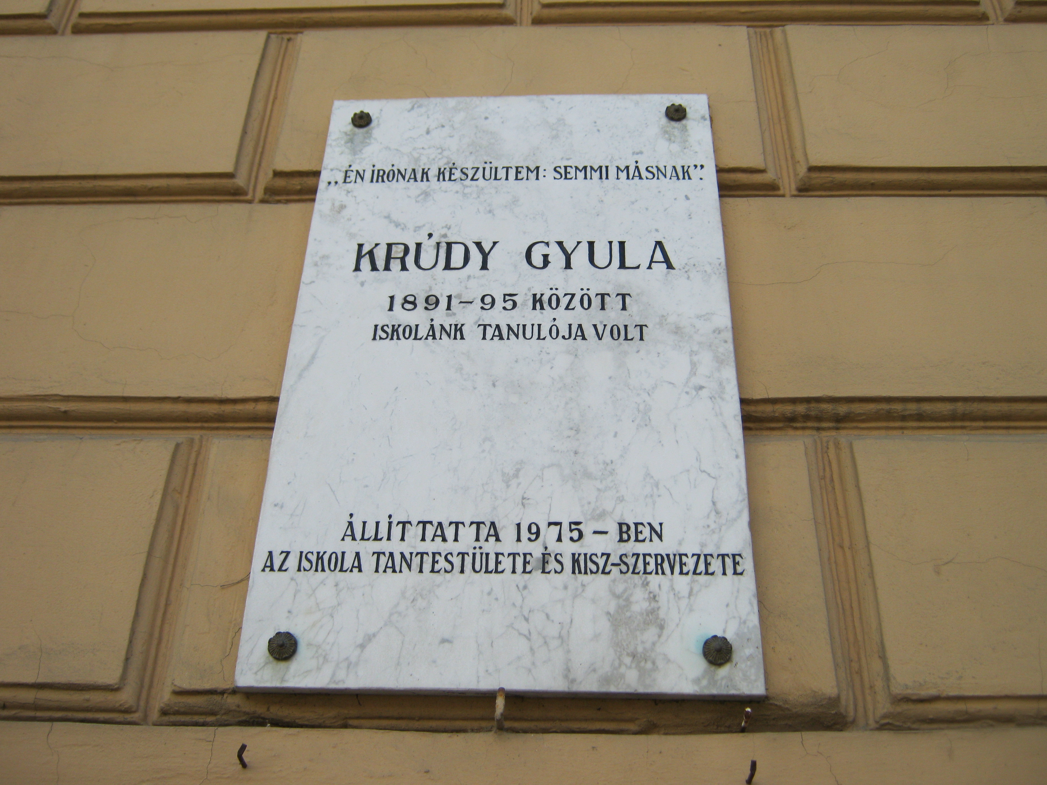 Nyilvános 1051 | 1410 | Nyíregyháza, Szent István utca 19. Evangélikus Kossuth Lajos Gimnázium | A megye legrégibb középiskolája. 1808-ban alapították mint evangélikus professzori iskolát (lásd: Nyíregyháza, Luther utca 5.). Nyolc osztályos gimnáziummá 1888-ra fejlesztették fel. Mai épületét ekkoriban, 1887-ben emelték Bobula János tervei szerint. Kossuth Lajos nevét 1921-ben vette fel. Az 1948-ban államosított iskolát 1992-ben kapta vissza az evangélikus egyház. Homlokzatán számos márványtábla emlékezik kiváló diákjaira, tanáraira. 1891 és 1895 között itt végezte a gimnázium felső osztályait a nyíregyházi születésű Krúdy Gyula. Kiváló tanára, Porubszky Pál fedezte fel először tehetségét, óvta, terelgette a fiút. "Hogy író lettem, neki köszönhetem. Az első álmokat, ábrándozásokat ő ojtotta belém, ő nevelte fel..." - emlékezett Krúdy. Felh. irod.: www.eklg.hu Szabó Ede: Krúdy Gyula. Bp. Szépirodalmi Kiadó, 1970 A fénykép 2010 augusztus elején készült |