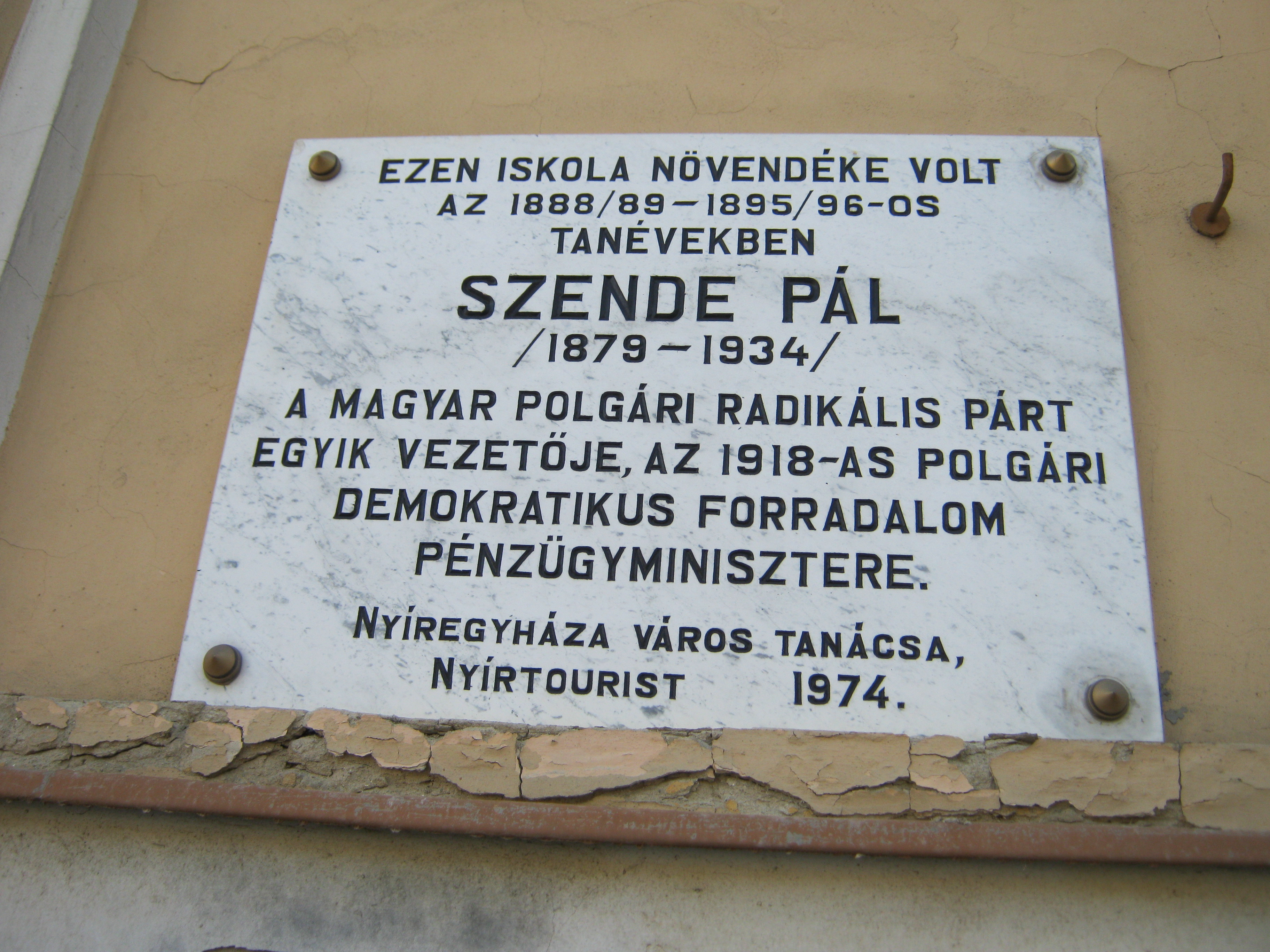 Nyilvános 1116 | 1423 | Nyíregyháza, Szent István utca 19. Evangélikus Kossuth Lajos Gimnázium | A megye legrégibb középiskolája. 1808-ban alapították mint evangélikus professzori iskolát (lásd: Nyíregyháza, Luther utca 5.). Nyolc osztályos gimnáziummá 1888-ra fejlesztették fel. Mai épületét ekkoriban, 1887-ben emelték Bobula János tervei szerint. Kossuth Lajos nevét 1921-ben vette fel. Az 1948-ban államosított iskolát 1992-ben kapta vissza az evangélikus egyház. Homlokzatán számos márványtábla emlékezik kiváló diákjaira, tanáraira. 1888/89 és 1895/6 között tanult itt Szende Pál, az 1918-as polgári demokratikus forradalom pénzügyminisztere. Felh. irod.: www.eklg.hu A fénykép 2010 augusztus elején készült |