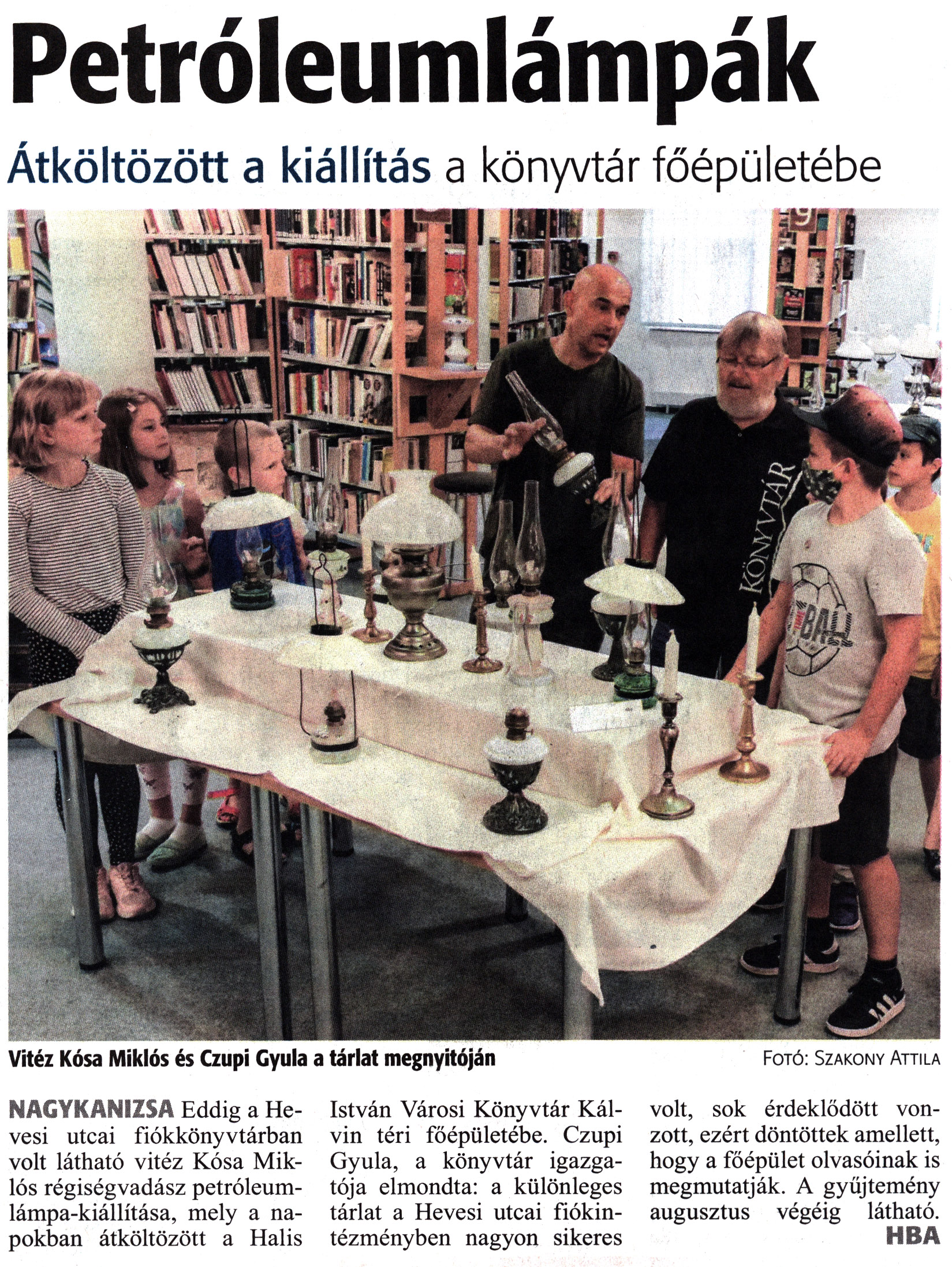 Nyilvános 1365 | 1860 | Zalai Hírlap 2021. július 7. 155. szám 16. oldal | Petróleumlámpák Átköltözött a kiállítás a könyvtár főépületébe Vitéz Kósa Miklós és Czupi Gyula a tárlat megnyitóján Fotó: Szakony Attila NAGYKANIZSA Eddig a Hevesi utcai fiókkönyvtárban volt látható vitéz Kósa Miklós régiségvadász petróleumlámpa-kiállítása, mely a napokban átköltözött a Halis István Városi Könyvtár Kálvin téri főépületébe. Czupi Gyula, a könyvtár igazgatója elmondta: a különleges tárlat a Hevesi utcai fiókintézményben nagyon sikeres volt, sok érdeklődött vonzott, ezért döntöttek amellett, hogy a főépület olvasóinak is megmutatják. A gyűjtemény augusztus végéig látható. HBA |