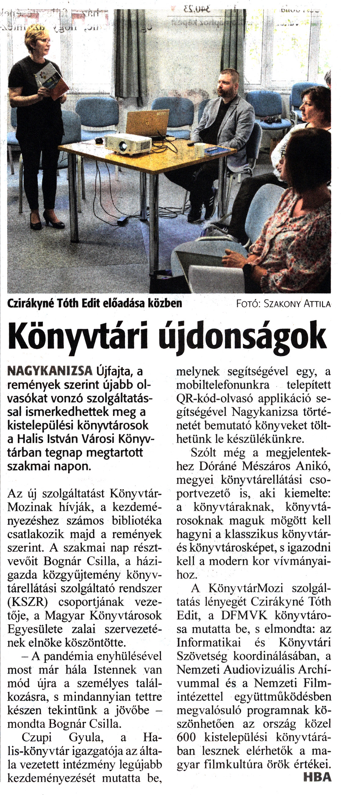 Nyilvános 1297 | 1652 | Zalai Hírlap 2022. április 22. 92. szám 3. oldal | Könyvtári újdonságok NAGYKANIZSA Újfajta, a remények szerint újabb olvasókat vonzó szolgáltatással ismerkedhettek meg a kistelepülési könyvtárosok a Halis István Városi Könyvtárban tegnap megtartott szakmai napon. Az új szolgáltatást Könyvtár-Mozinak hívják, a kezdeményezéshez számos bibliotéka csatlakozik majd a remények szerint. A szakmai nap résztvevőit Bognár Csilla, a házigazda közgyűjtemény könyvtárellátási szolgáltató rendszer (KSZR) csoportjának vezetője, a Magyar Könyvtárosok Egyesülete zalai szervezetének elnöke köszöntötte. - A pandémia enyhülésével most már hála Istennek van mód újra a személyes találkozásra, s mindannyian tettre készen tekintünk a jövőbe -mondta Bognár Csilla. Czupi Gyula, a Halis-könyvtár igazgatója az általa vezetett intézmény legújabb kezdeményezését mutatta be, melynek segítségével egy, a mobiltelefonunkra telepített QR-kód-olvasó applikáció segítségével Nagykanizsa történetét bemutató könyveket tölthetünk le készülékünkre. Szólt még a megjelentekhez Dóráné Mészáros Anikó, megyei könyvtárellátási csoportvezető is, aki kiemelte: a könyvtáraknak, könyvtárosoknak maguk mögött kell hagyni a klasszikus könyvtár- és könyvtárosképet, s igazodni kell a modern kor vívmányaihoz. A KönyvtárMozi szolgáltatás lényegét Czirákyné Tóth Edit, a DFMVK könyvtárosa mutatta be, s elmondta: az Informatikai és Könyvtári Szövetség koordinálásában, a Nemzeti Audiovizuális Archívummal és a Nemzeti Filmintézettel együttműködésben megvalósuló programnak köszönhetően az ország közel 600 kistelepülési könyvtárában lesznek elérhetők a magyar filmkultúra örök értékei. HBA Czirákyné Tóth Edit előadása közben Fotó: Szakony Attila |