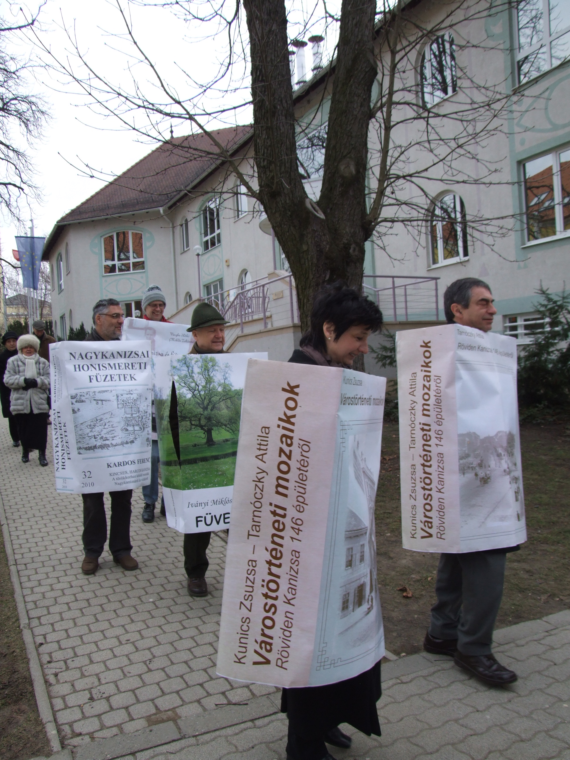 Nyilvános 1497 | 3035 | 2013. február 9. A farsangi fánkfesztiválra készülve felhívásban kértük olvasóinkat, hogy öltsék magukra kedves könyvüket. Egy „könyvespolcnyi” jelentkező vette magára kedves olvasmányát, az ő vonulásukról készültek ezek a képek. A környezetükben néhol láthatók a Nagykanizsai Gólyalábasok, akik szintén a könyvtárhoz kötődnek. A „felvonuló kötetek” a könyvtár épületében még megtekinthetők. | |