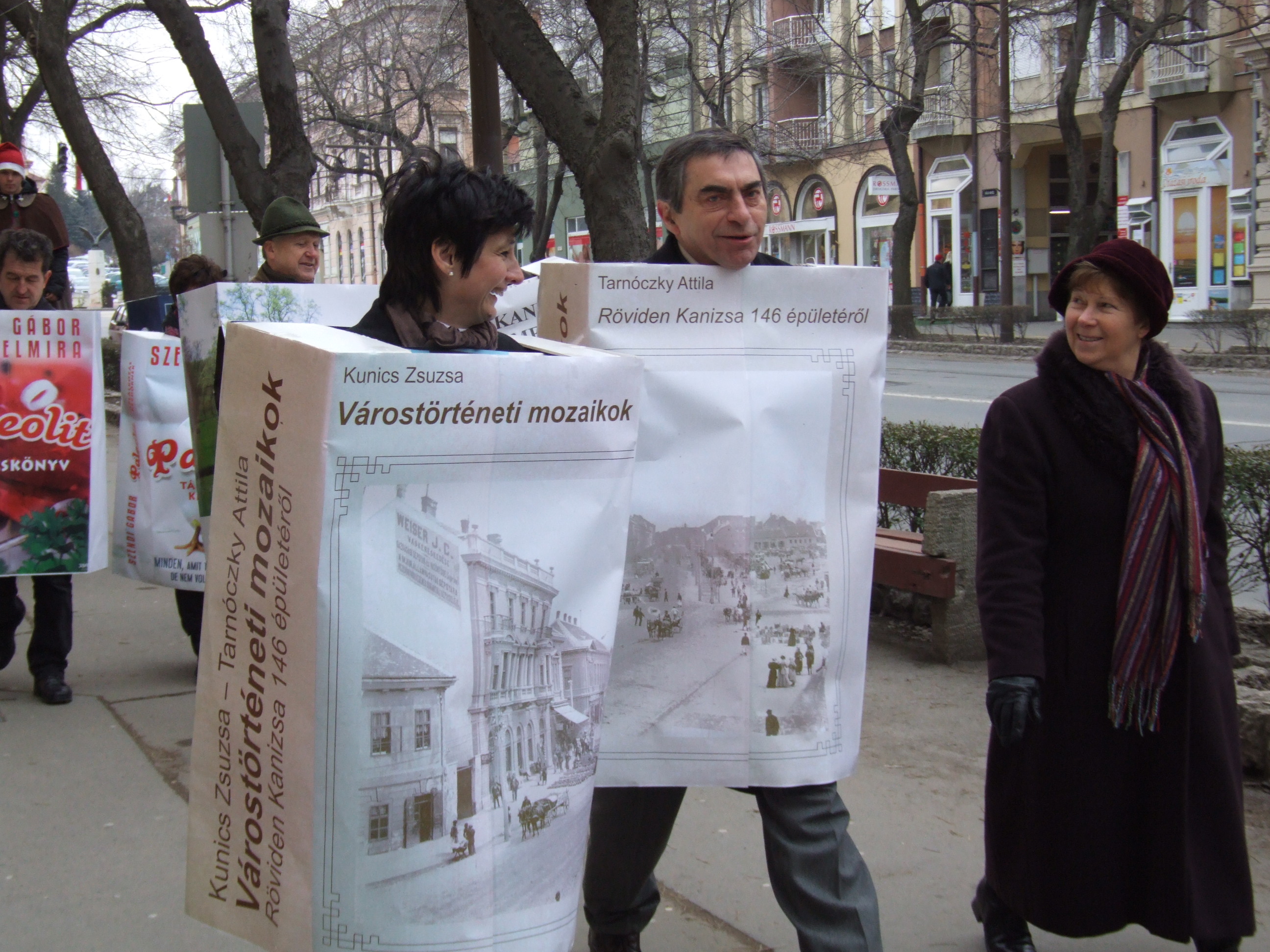 Nyilvános 1175 | 1582 | 2013. február 9. A farsangi fánkfesztiválra készülve felhívásban kértük olvasóinkat, hogy öltsék magukra kedves könyvüket. Egy „könyvespolcnyi” jelentkező vette magára kedves olvasmányát, az ő vonulásukról készültek ezek a képek. A környezetükben néhol láthatók a Nagykanizsai Gólyalábasok, akik szintén a könyvtárhoz kötődnek. A „felvonuló kötetek” a könyvtár épületében még megtekinthetők. | |