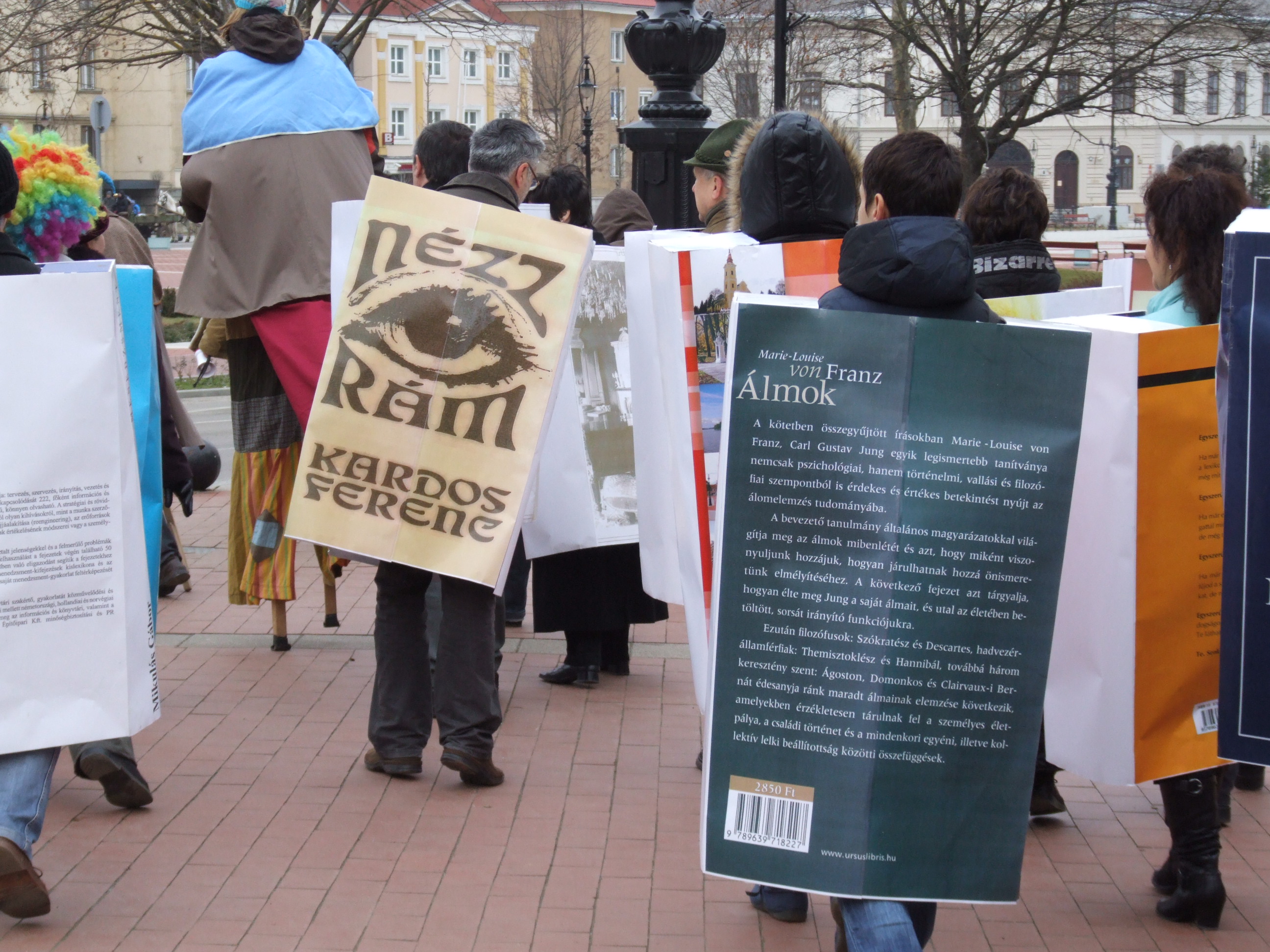 Nyilvános 1132 | 1581 | 2013. február 9. A farsangi fánkfesztiválra készülve felhívásban kértük olvasóinkat, hogy öltsék magukra kedves könyvüket. Egy „könyvespolcnyi” jelentkező vette magára kedves olvasmányát, az ő vonulásukról készültek ezek a képek. A környezetükben néhol láthatók a Nagykanizsai Gólyalábasok, akik szintén a könyvtárhoz kötődnek. A „felvonuló kötetek” a könyvtár épületében még megtekinthetők. | |