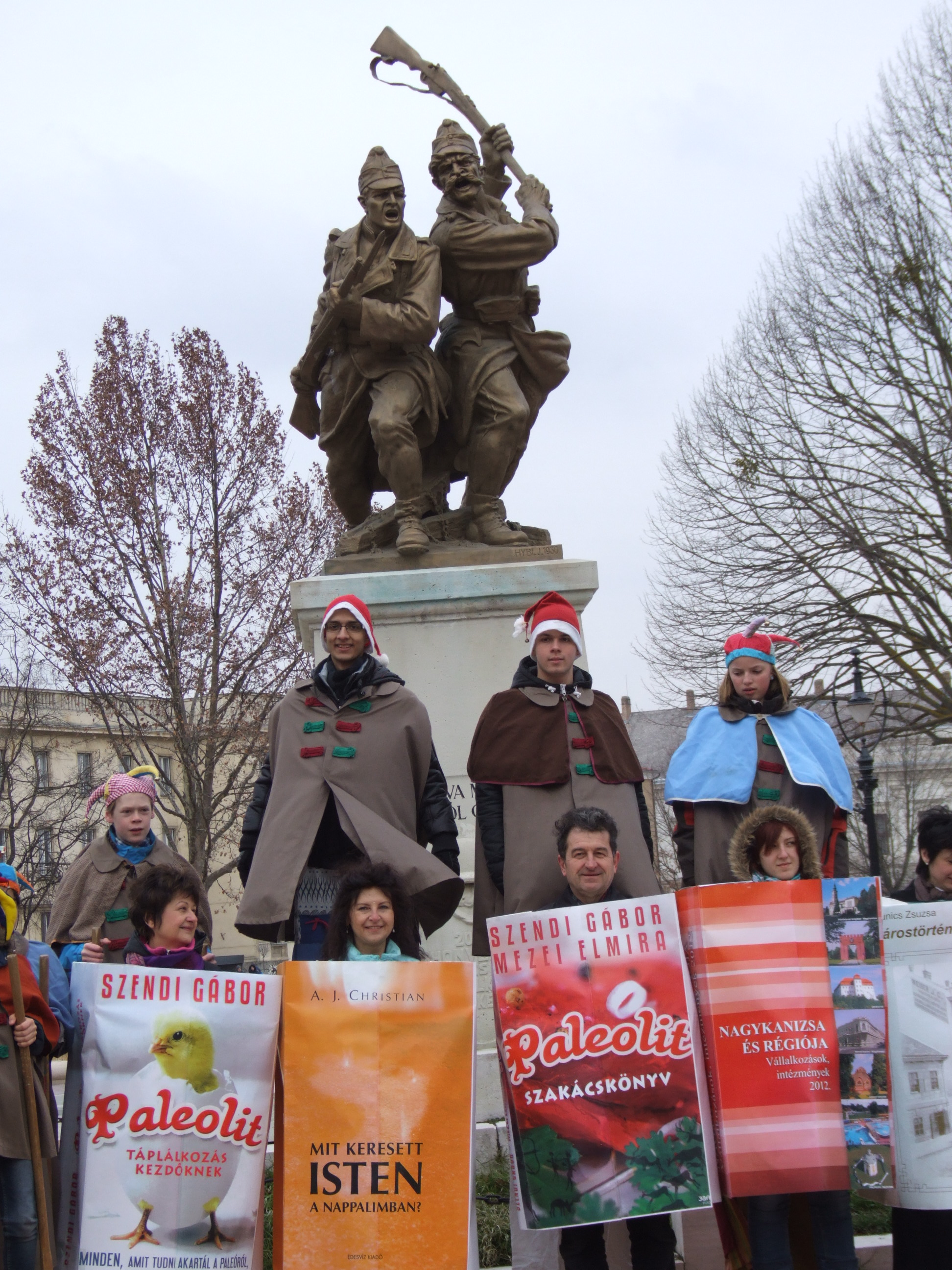 Nyilvános 1096 | 1514 | 2013. február 9. A farsangi fánkfesztiválra készülve felhívásban kértük olvasóinkat, hogy öltsék magukra kedves könyvüket. Egy „könyvespolcnyi” jelentkező vette magára kedves olvasmányát, az ő vonulásukról készültek ezek a képek. A környezetükben néhol láthatók a Nagykanizsai Gólyalábasok, akik szintén a könyvtárhoz kötődnek. A „felvonuló kötetek” a könyvtár épületében még megtekinthetők. | |