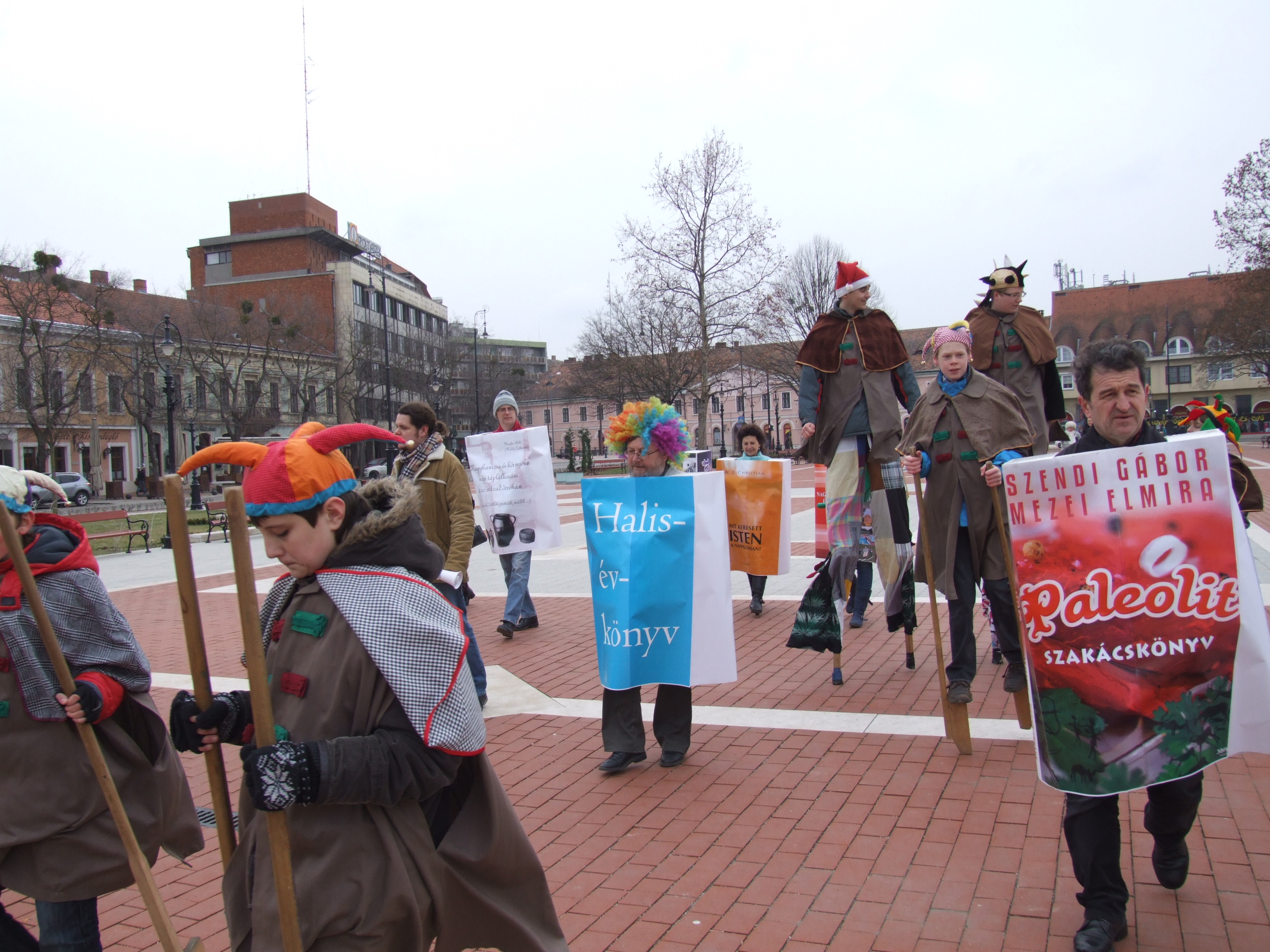Nyilvános 1121 | 1478 | 2013. február 9. A farsangi fánkfesztiválra készülve felhívásban kértük olvasóinkat, hogy öltsék magukra kedves könyvüket. Egy „könyvespolcnyi” jelentkező vette magára kedves olvasmányát, az ő vonulásukról készültek ezek a képek. A környezetükben néhol láthatók a Nagykanizsai Gólyalábasok, akik szintén a könyvtárhoz kötődnek. A „felvonuló kötetek” a könyvtár épületében még megtekinthetők. | |