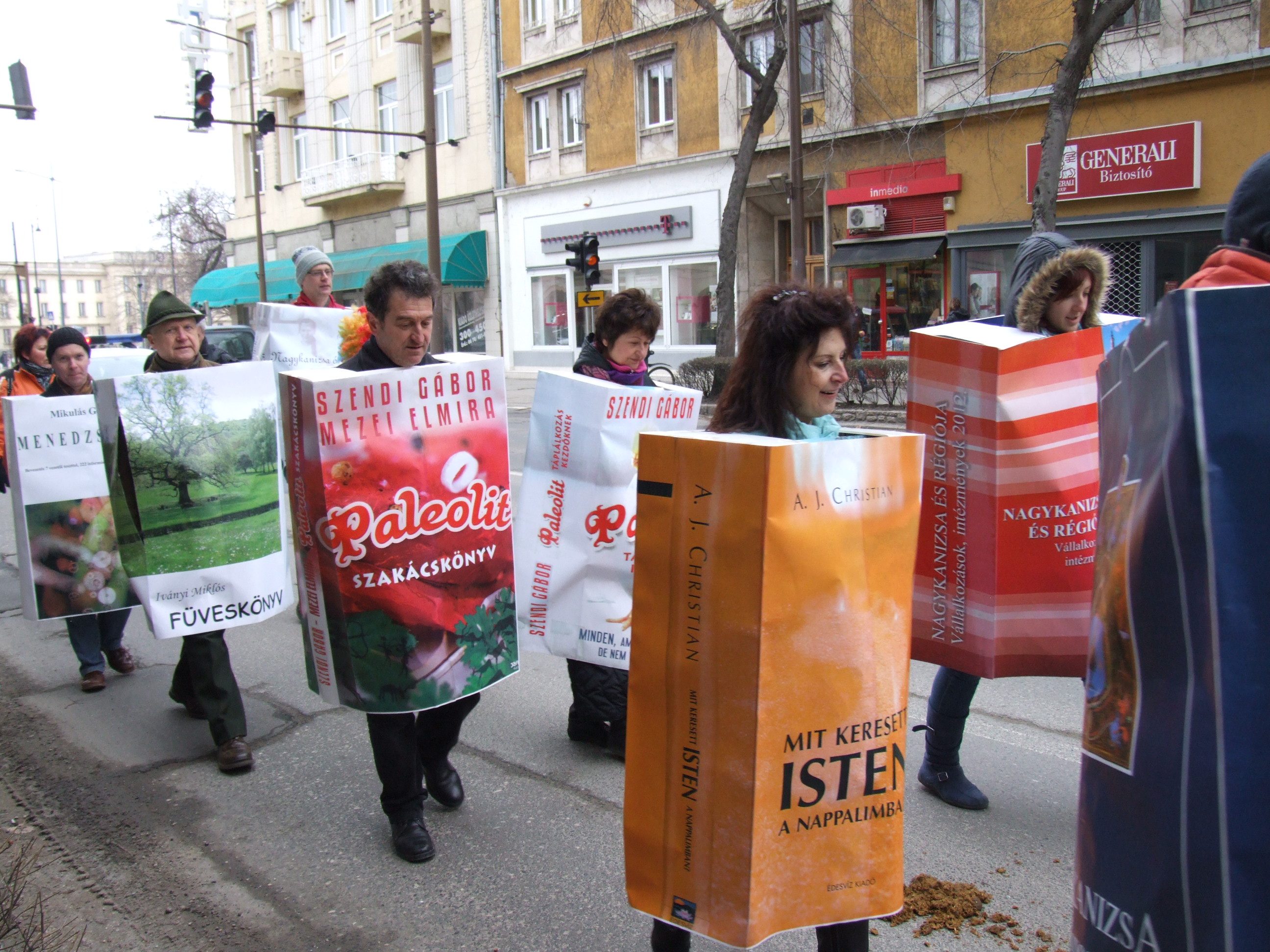 Nyilvános 1118 | 1464 | 2013. február 9. A farsangi fánkfesztiválra készülve felhívásban kértük olvasóinkat, hogy öltsék magukra kedves könyvüket. Egy „könyvespolcnyi” jelentkező vette magára kedves olvasmányát, az ő vonulásukról készültek ezek a képek. A környezetükben néhol láthatók a Nagykanizsai Gólyalábasok, akik szintén a könyvtárhoz kötődnek. A „felvonuló kötetek” a könyvtár épületében még megtekinthetők. | |