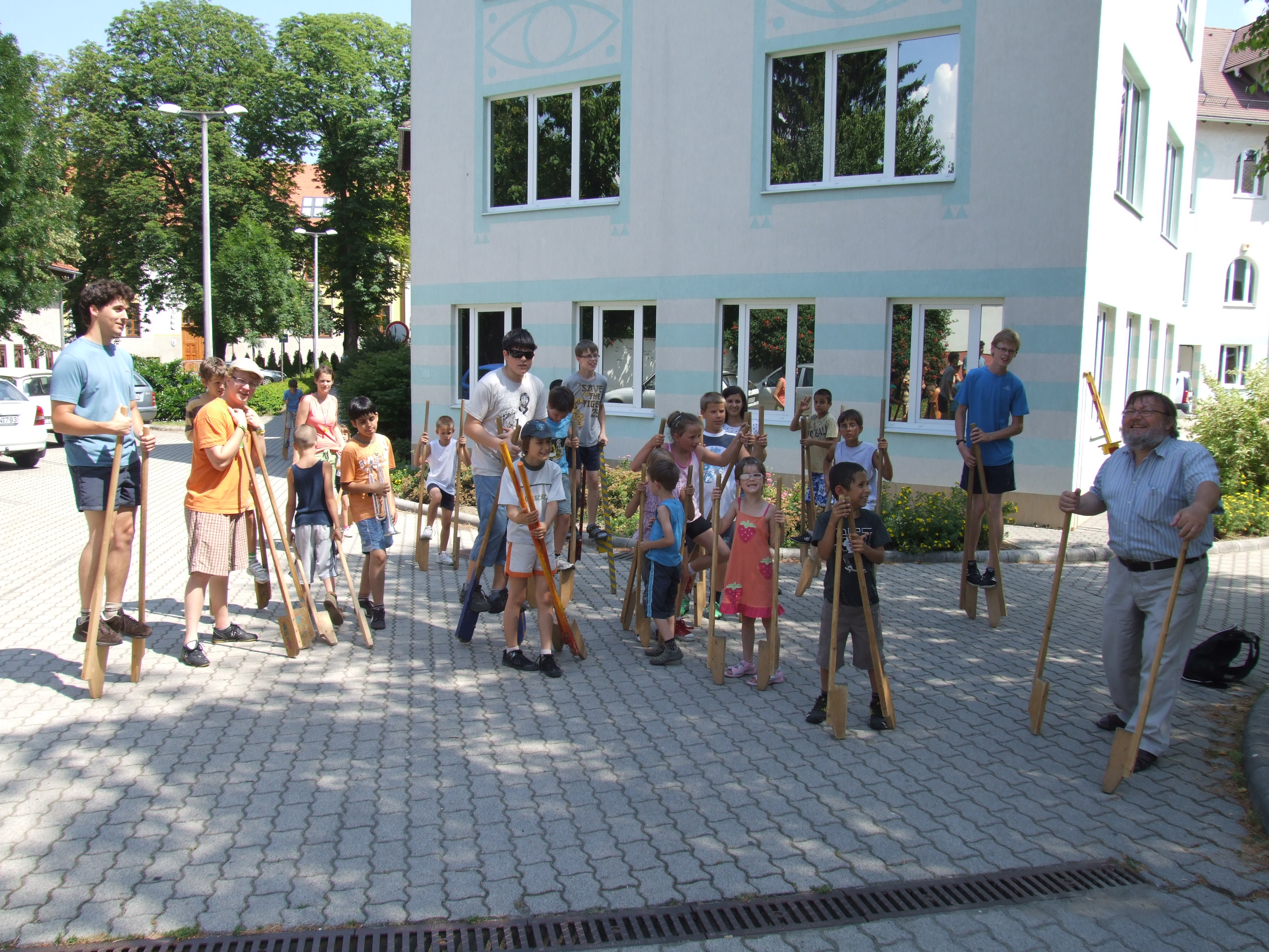 Olvasótábor 2013 résztvevők és piaristák gólyalábaznak