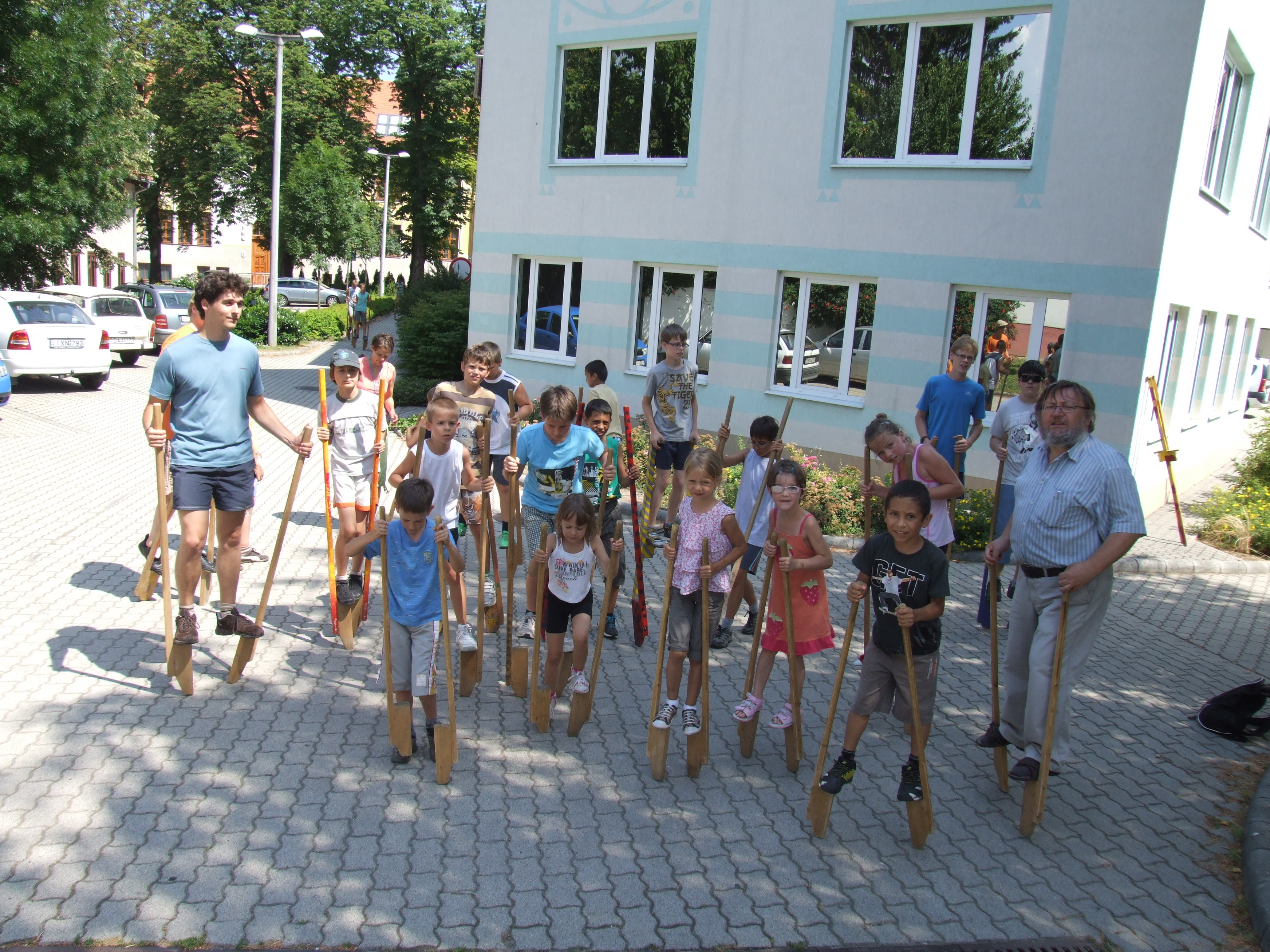 Olvasótábor 2013 résztvevők és piaristák gólyalábaznak