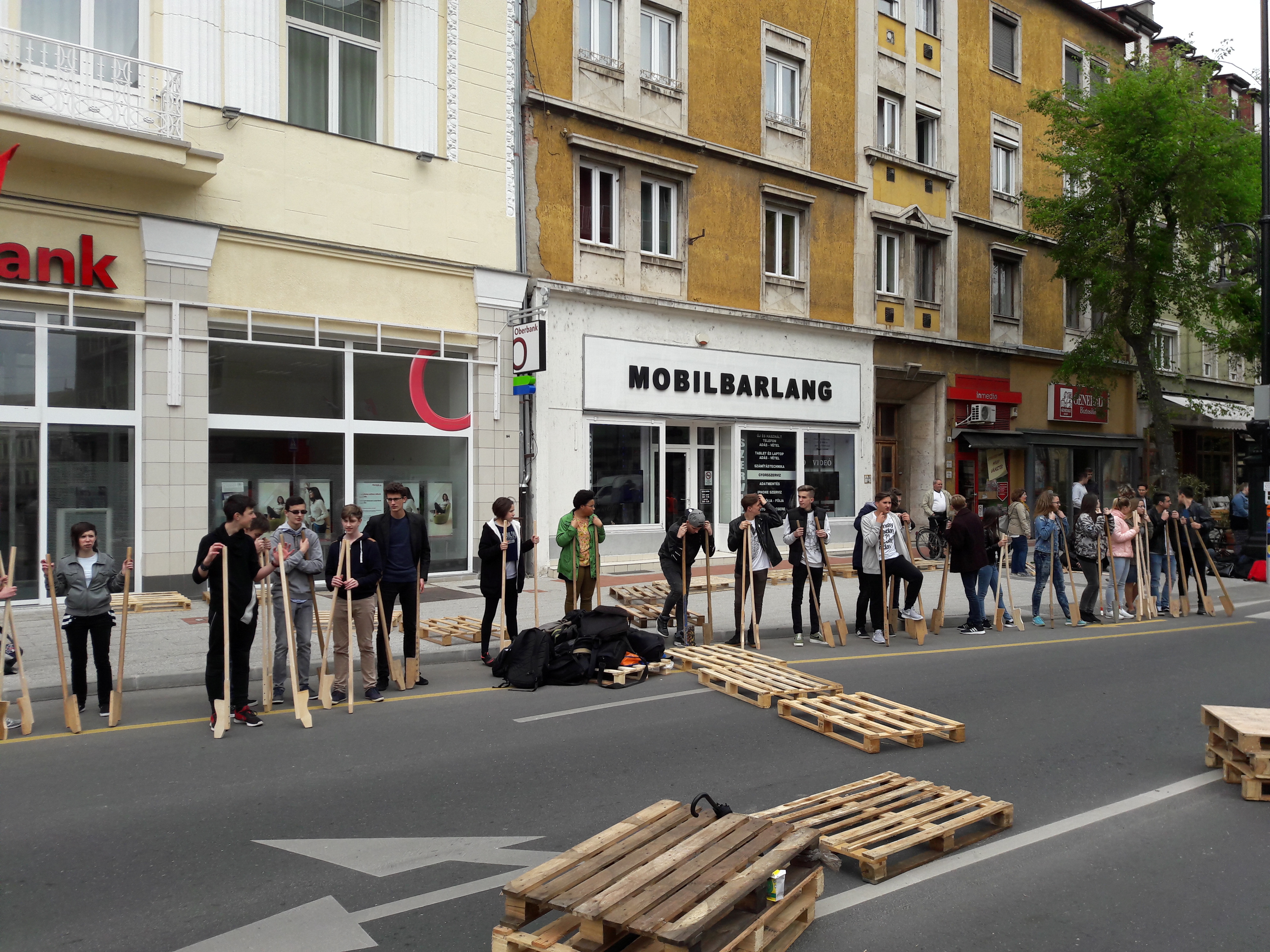 2017.04.27. Tömeges gólyalábra állás a Fő út - Ady u. kereszteződésében