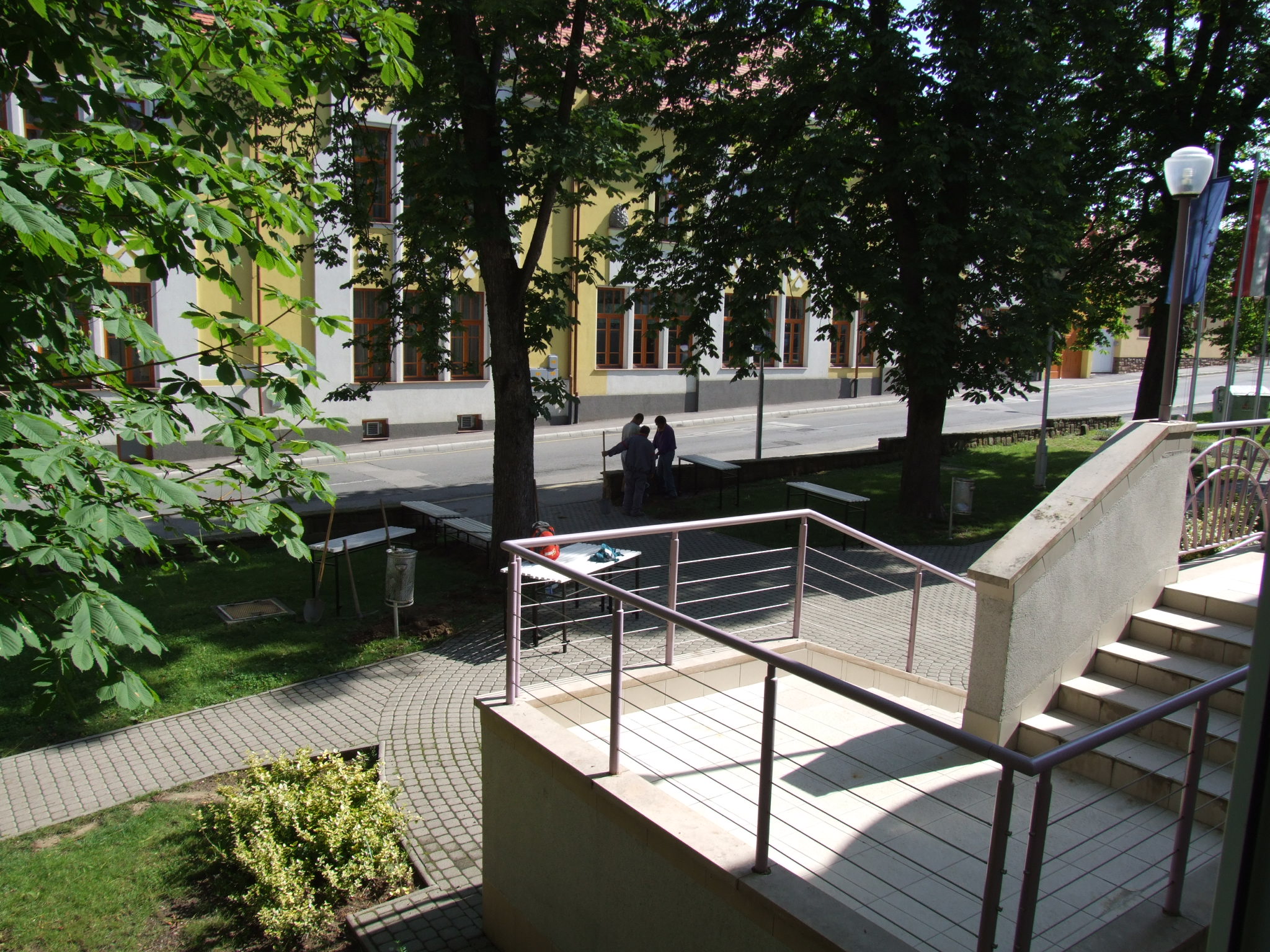 2009.06.08. Szerelik az első, fehér padokat