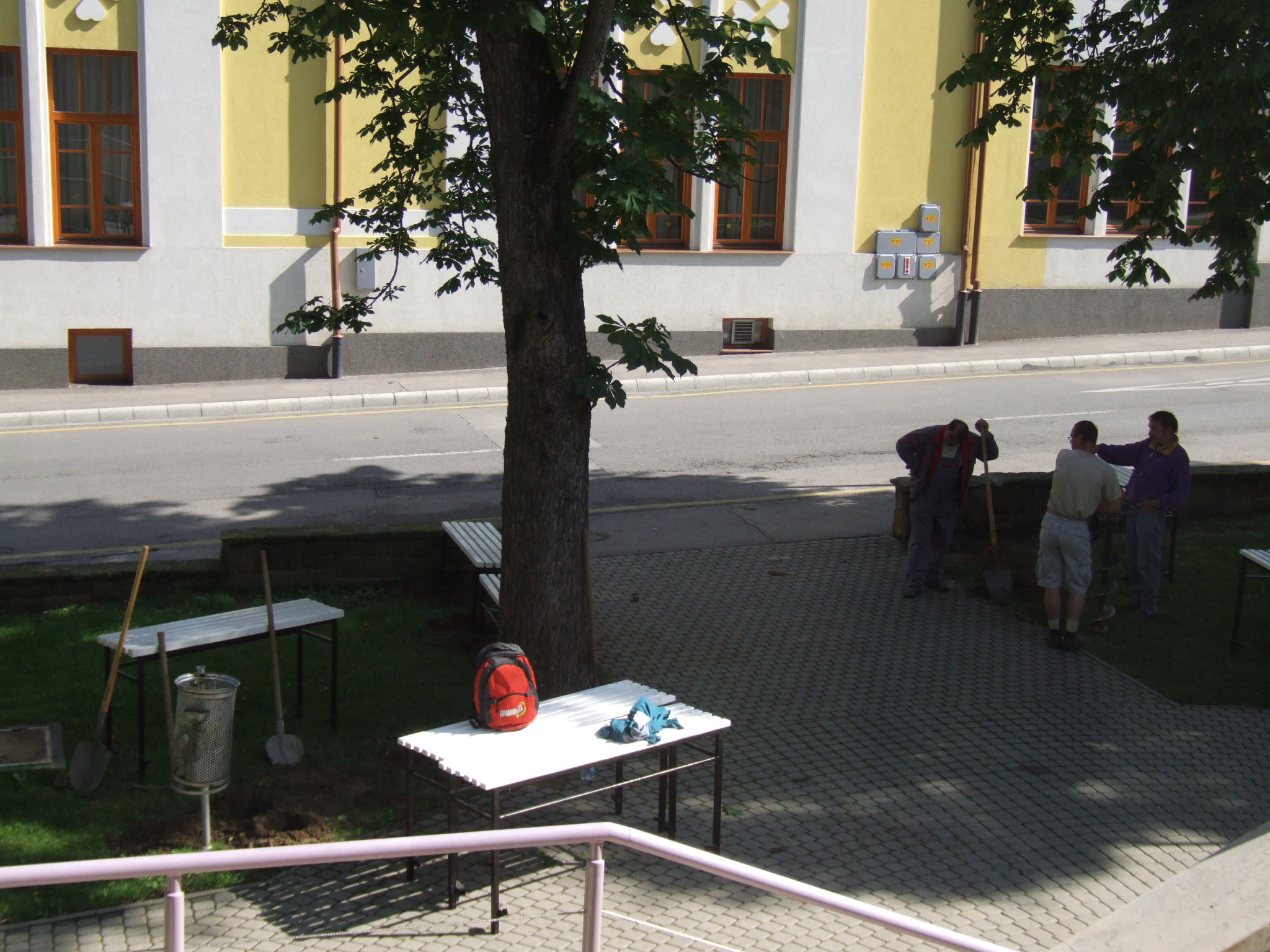 2009.06.08. Szerelik az első, fehér padokat